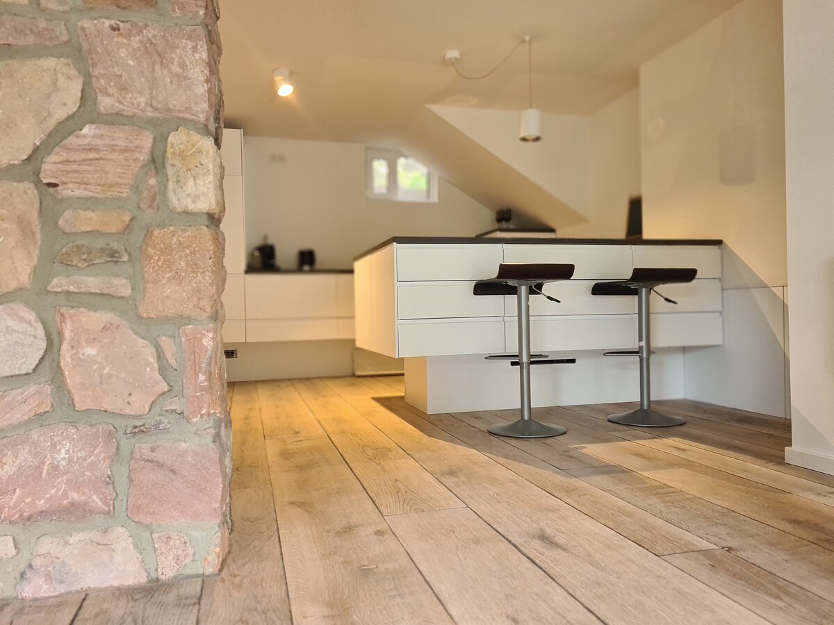 El apartamento de vacaciones cerrado de 70 m² se encuentra en el primer planta de una antigua granja modernizada con vistas panorámicas en una ubicación tranquila y aislada, pero cerca del centro de la ciudad. Aparcamiento justo en la entrada. La casa es un poco ruidosa, especialmente el sonido de los pasos es audible. 2 habitaciones (dormitorio y sala de estar con sofá cama), una cocina bien equipada y un invernadero de 20 m² bien aislado. El terreno circundante es natural. Zona de juegos y zona para tumbarse con barbacoa y chimenea.