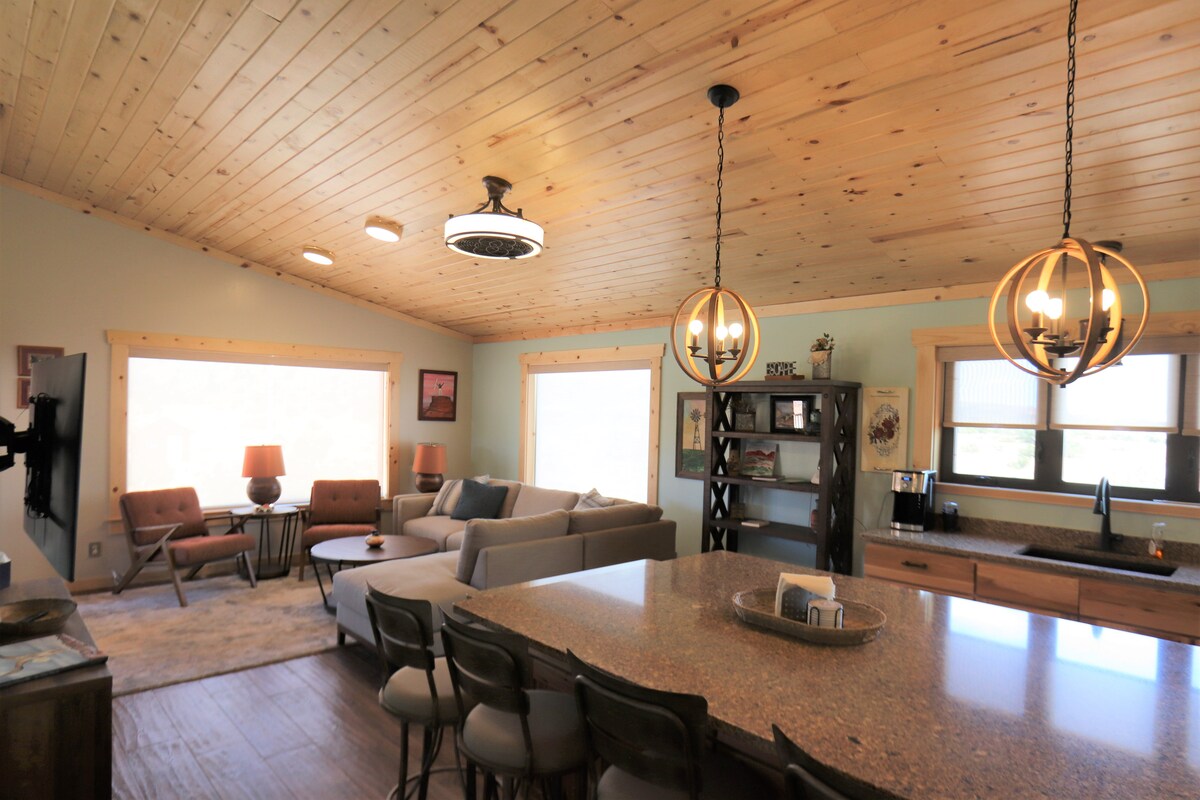 Disfruta de nuestra lujosa Tiny Home, enclavada en la zona rural del sur de Utah, con acantilados de roca roja a lo lejos y un paisaje estelar de la Vía Láctea, en una pequeña aldea tranquila en el borde del Parque Nacional Capitol Reef. Desde la distancia, la pequeña casa parece un poco... pequeña, pero una vez dentro, hay una sensación de amplitud y luz: techos altos y muchas ventanas. Es realmente ideal para 1-2 personas, pero también hay un cómodo sofá cama para una tercera persona y un largo banco acolchado para una cuarta. ¡Amplia terraza para observar las estrellas!