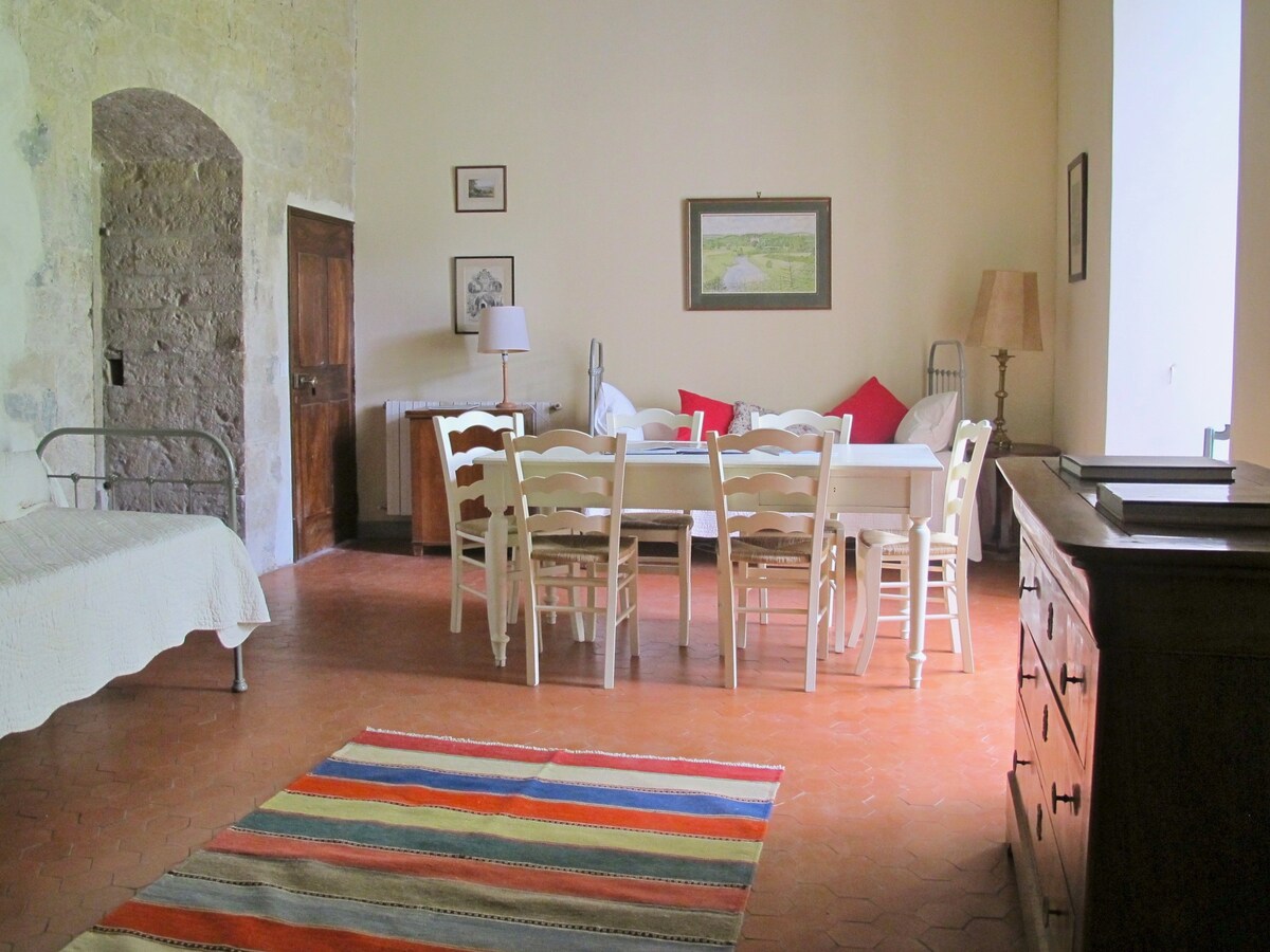 El apartamento de 40 m², en el anexo del castillo es la única habitación en este edificio. Se compone de: - Una sala de estar/comedor con sofá cama. - Una cocina totalmente equipada y equipada. - Un cuarto de baño con ducha a ras de suelo, inodoro suspendido y lavabo sobre mueble. En el altillo: la habitación con una cama grande de 160 x 200 cm. En el exterior, en la terraza privada: mesa y sillas. El lugar es muy tranquilo y relajante. SPA de natación de 4 x 2,20 ml ,con suplemento Piscina gratuita