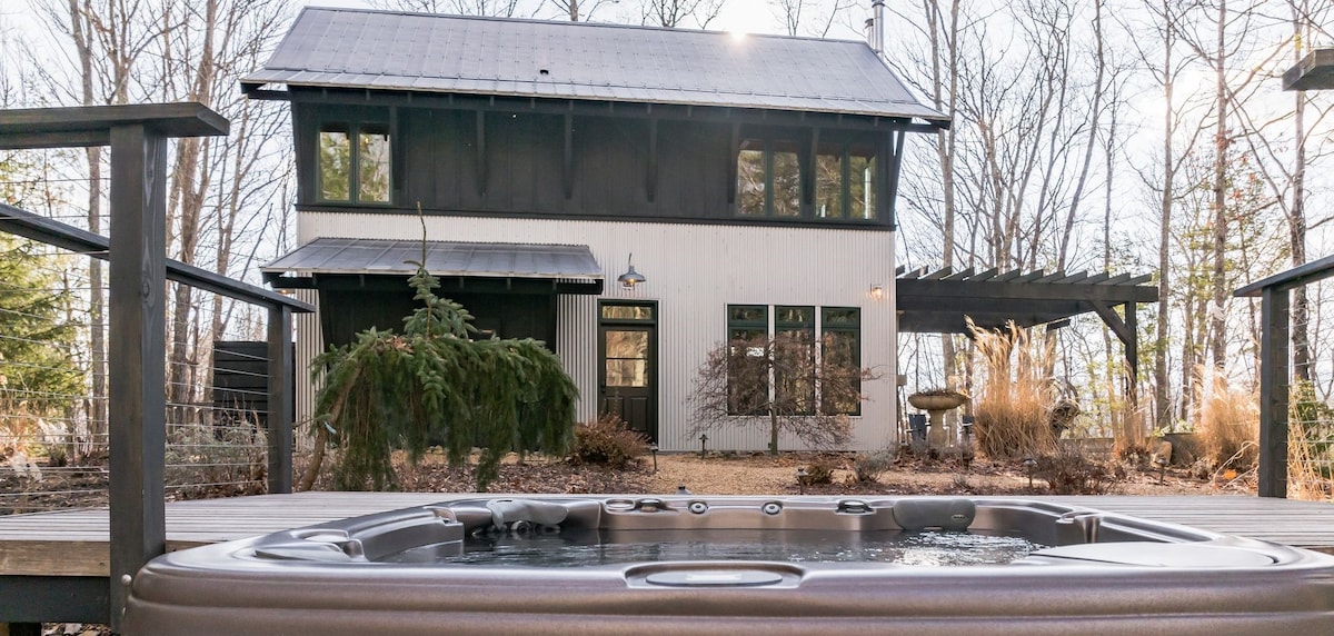 Life seems to slow down at The Steel Nest—a place of quiet forests, endless stars, and fireside nights on your own private mountaintop. Wander through fallen leaves or snowy woods, then return to cozy heated floors, a crackling wood stove, and the hot tub under a canopy of stars. With over 10 acres and no neighbors in sight, this serene hideaway is where modern design meets ultimate comfort. Breathe deep and slow down; you've found the perfect spot to recharge and reconnect.