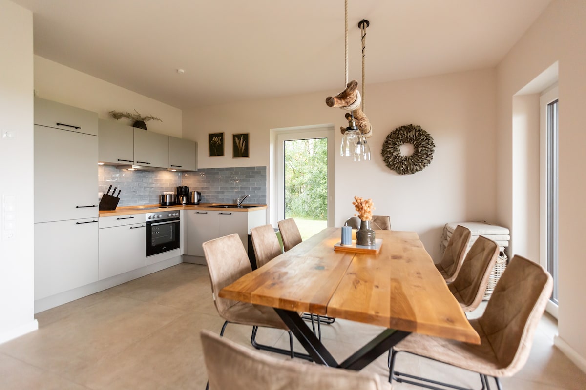 Frisch renoviertes Ferienhaus, ca. 70m² Wohnfläche, mit Top-Ausstattung in Ruhiglage, 5 min zum Strand, Terrasse und Garten, bis 5 Personen + Baby, familien- und seniorenfreundlich! Das Haus bietet 3 Schlafzimmer, ein geräumiges Wohnzimmer, einen lichtdurchfluteten Essbereich mit vorgelagerter Terrasse und Blick ins Grüne, eine vollausgestattete Küche, ein modern gestaltetes Mini-Duschbad/WC sowie Flur und Abstellraum. WLAN 50Mbit/s, SAT-TV, Bücher, Spiele, Kinderspielzeug und Fahrräder inkl.