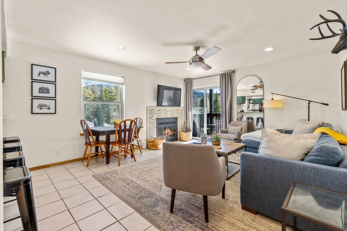 Free covered parking & high-speed internet. 890 sq ft condo w/private balcony overlooking Tenmile Creek & nestled into Mt. Royal. Enjoy a fully equipped kitchen, gas fireplace, balcony, Netflix/smart TV. Bus stops directly out front & drops you at Copper Mnt in 7 min! Centrally located near multiple world-class ski resorts (Vail, Breck, Keystone etc) Tenmile Creek & bike/rec path steps away. Walk to Main St. for shopping & dining. Rent a boat, paddle board at Lake Dillon (.7miles).