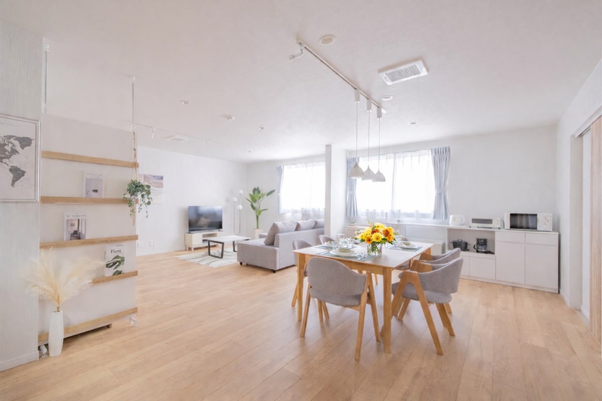 Casa unifamiliar situada en la isla de Enoshima. ¡Con un aparcamiento gratuito para un coche!Se encuentra a unos 10 minutos a pie de la estación de Katase-Enoshima. Con 4 dormitorios, sala de estar, comedor y cocina, y un buen número de habitaciones, es el lugar ideal para un viaje sin preocupaciones con la familia y los amigos, o como base para el teletrabajo mientras surfeas todos los días. Hay un parque donde los niños pueden jugar y un paseo marítimo, por lo que no hay escasez de ejercicio. Después de la limpieza, se limpian con alcohol los lugares que se tocan con las manos. Hay alcohol en la entrada y en las habitaciones, así que utilícelo para prevenir infecciones.