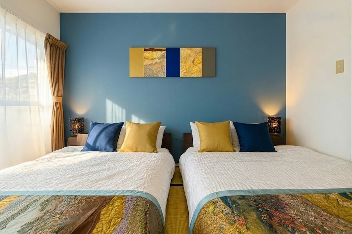 Hola, soy Micky ☀️ Este alojamiento tipo apartamento está a 10 minutos a pie de la estación de Kawaguchiko. La vista del monte Fuji desde el segundo piso del apartamento es muy bonita y es un gran lugar para tomar fotos☺ ️ La tienda de conveniencia está a 3 minutos a pie. Está en una ubicación muy buena, a una parada de Fuji-Q Highland, un parque de atracciones. La habitación fue mi atención y la habitación de estilo japonés tenía papel tapiz con estampado de cerezos en flor hasta el techo.Además, el papel tapiz dorado brilla en el patrón tradicional japonés y la luz también es muy hermoso.También hay decoraciones como sillas y bonsáis con esterillas de tatami, para que puedas disfrutar plenamente del espacio japonés [japonés]. La habitación tiene capacidad para 4 personas. También tenemos platos y almohadas para niños. La cama es de un tamaño muy grande de 2 metros (2 personas), y puedes dormir con un futón en una alfombra de tatami (1 persona).Un sofá aún más elegante se puede convertir en una cama. Disfruta plenamente del interior lleno de los encantos de Japón y el monte ¡Fuji, que se jacta de Japón! Gracias: -) * Después de reservar, te guiaremos al baño privado con ducha.También tienes que ir al baño una vez fuera de la habitación y moverte a la habitación de al lado.Pasa por un pequeño pasillo compartido, pero puedes estar seguro de que rara vez conoces a otros huéspedes