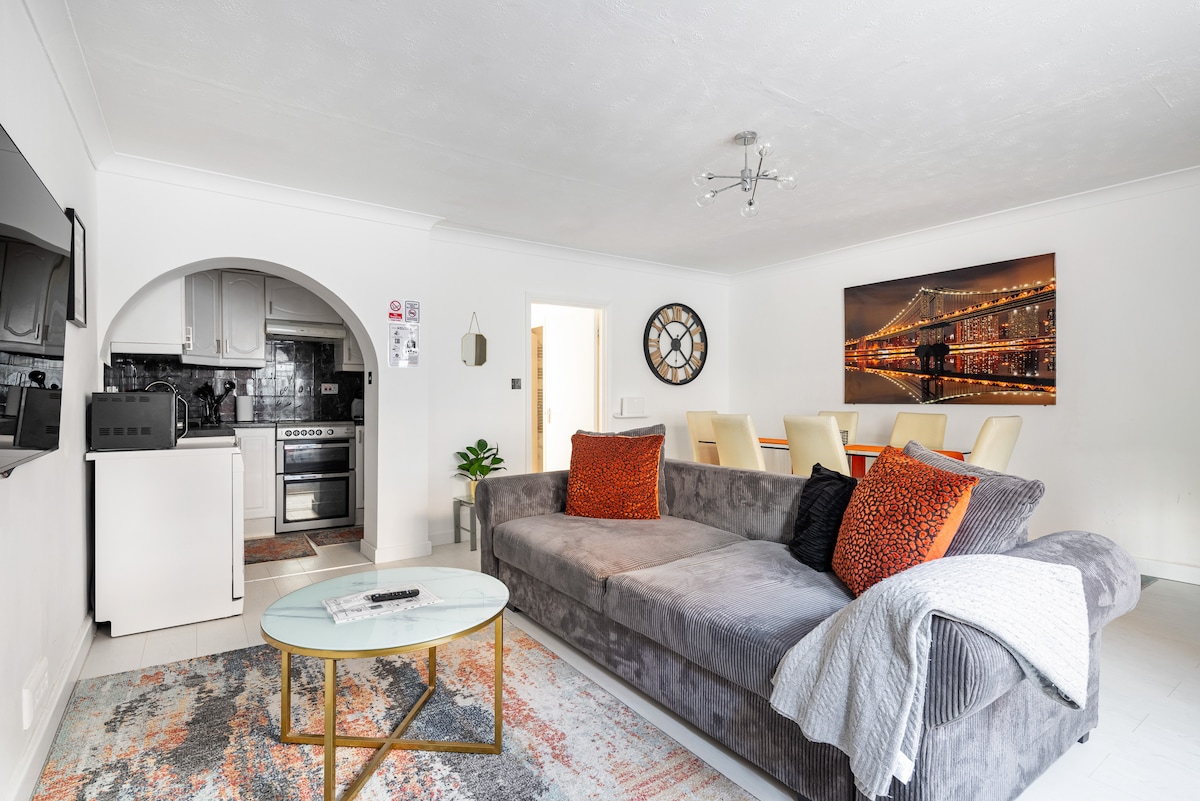 Large, Artsy, Quirky 2 Bedroom 2-6 guests (Room for 12 guests onsite - msg us) Perfect for weekends, long stays & remote work. Full kitchen, washer/dryer, EV charge, free parking, dog friendly -2 max. 25+restaurants. Fun shops: Antiques, clothes, art, gift, flower & quilt. Walk to Henry VIII Hampton Court Palace & Flower Show, Thames riverboats, Bushy Park’s Parkruns. Walk to London trains & buses to Twickenham & Richmond (home of Ted Lasso & LondonAtelierByproducts - gifts & women’s fashion!