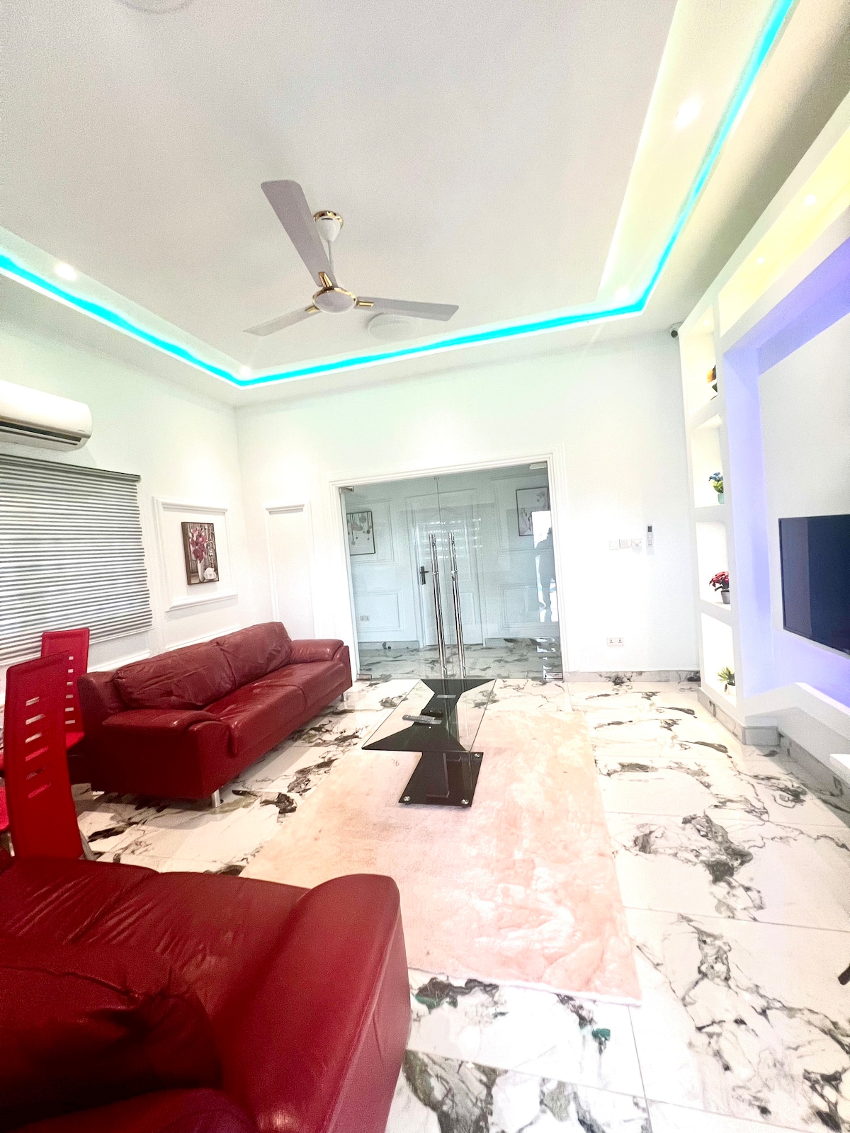 Welcome to the Banahene Residence! Our fully furnished 200 m² house features three bedrooms - each with a bathroom - comfortably accommodating up to five guests. Enjoy air conditioning and ceiling fans in every room, as well as a fully equipped kitchen for all your cooking needs. Our house is equipped with a video doorbell and electric security fence for your safety and peace of mind. - Breakfast and dinner service available - Airport shuttle on demand - Generator available