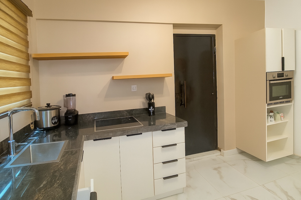 Make some memories at this unique and family-friendly place. A neatly furnished 3 bedroom apartment with Air condition, free wifi and a car park . There is 24/7 security plus security cameras on the compound.