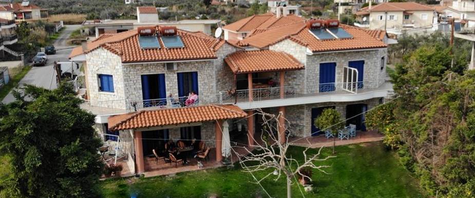 Es un complejo de dos (2) alojamientos independientes con piscina y patio compartidos. Disfruta de nuestro pintoresco pueblo semimontañoso a 320 metros de altitud, con la magnífica vista del golfo de Corinto. Disfruta de momentos de relajación y diversión en la piscina. El alojamiento está a 5 kilómetros del mar, con muchas playas hermosas. (Los últimos 50 metros para acceder a la propiedad son una carretera de hormigón ligeramente cuesta arriba).