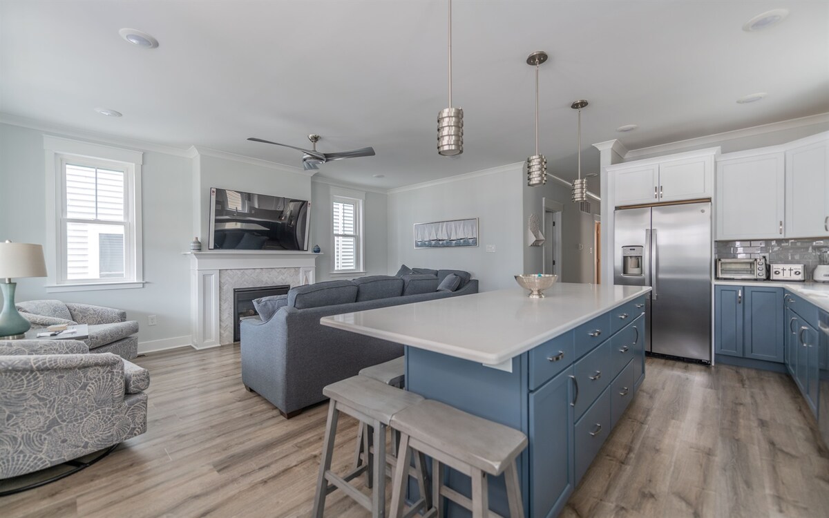 ¡Todas las comodidades de un hogar y a poca distancia a pie del paseo marítimo y la playa! Cocina con todo lo necesario para cocinar. Televisores inteligentes en la sala de estar y en los dormitorios. Juegos, rompecabezas y libros infantiles para el entretenimiento. Lavadora y secadora gratuitas en la unidad. Concepto de vida abierto, muy limpio y cómodo. Siéntate en el porche delantero para disfrutar de la vista a la bahía y el aire salado. Se proporcionan etiquetas de playa, sillas, juguetes de playa y toallas para el verano. Los perros entrenados para estar en casa son bienvenidos. Tenemos un patio trasero totalmente vallado.