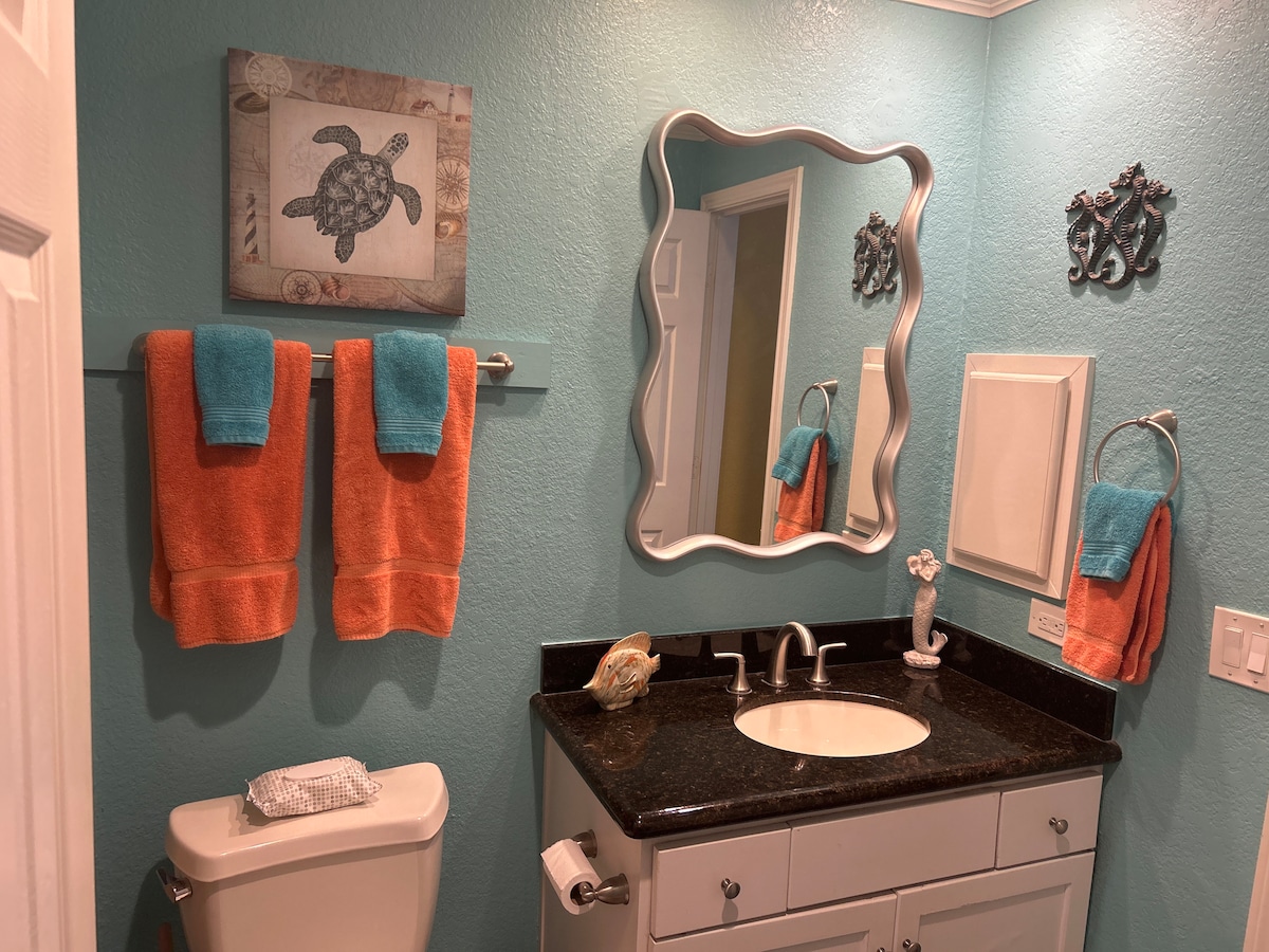 Regístrate en esta encantadora suite de invitados con entrada privada y estacionamiento fuera de la calle. ¡Ubicado en el centro, a solo 3 millas de las terminales de cruceros, a 4 millas de Moody Gardens y a 10 minutos a pie de la playa! La suite es una adición a un bungalow artesanal bien mantenido en un barrio residencial. Cuenta con muebles de madera maciza de calidad, decoración elegante y varias comodidades que incluyen cafetera con suministros de café, microondas, secador de pelo, TV inteligente, platos y asientos.