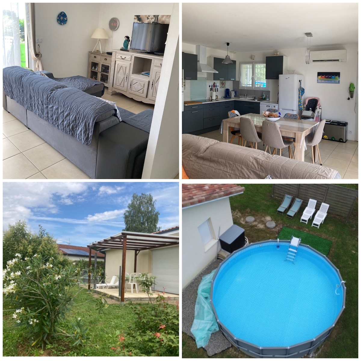 Bonjour :-) Maison 145 m2 sur terrain de 2500 m2 non clôturé, environnement calme, entouré d'arbres et de champs. Terrasse couverte de 40 m2 donnant sur pelouse avec le soleil du matin. Dax 20min : cures, marché produit locaux, commerces, fontaine chaude... OCEAN 40 min BIARRITZ 1h et 1h20 l'Espagne et ses Tapas... PATINOIRE 1h Anglet ATLANTIC PARC 40 min Seignosse PISCINE Montfort 10 min A 2km restaurant de produits régionaux, pizzeria A 8 min Pontonx : boulangeries, supermarché, cinéma...