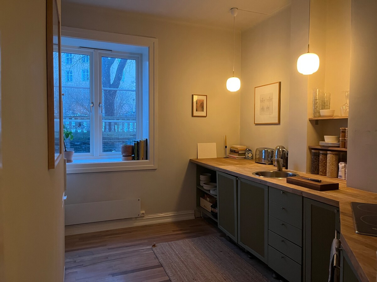 Welcome to Grünerløkka! Many people’s favorite part of Oslo - a historic industrial area now home to trendy singles, young families, priests, poets - and parks. Centrally located, my place is quiet, bright, secluded - just a few minutes away from hundreds of local cafe's, restaurants, shops and bars. Take a stroll or break into a run along Akerselva river or in the expansive public parks nearby. Walk, bike, scooter, or ride the "trikk" to anywhere - or stay at home with a book in our backyard.
