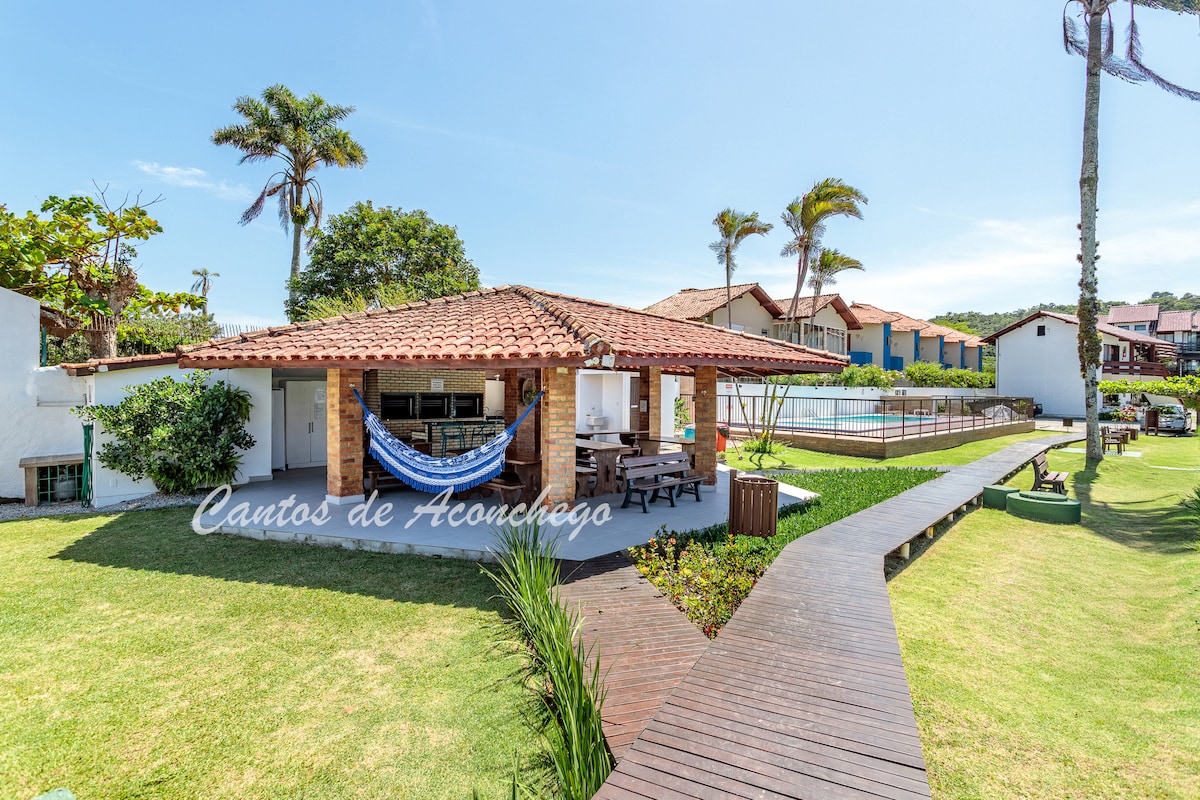 Relájese en este lugar único y tranquilo, con vista al mar, entre las playas de Forte y Jurerê Internacional. La cabaña tiene: * Ropa de cama y toallas * Cocina completa: * Horno * Cocina * Heladera * Microondas * Vajilla y utensilios * Sandwichera * Jarra eléctrica * Licuadora * Máquina de palomitas de maíz eléctrica * Tostadora * Cafetera de cápsulas (marca Três Corações) * Bañera de hidromasaje * Zona con parrilla