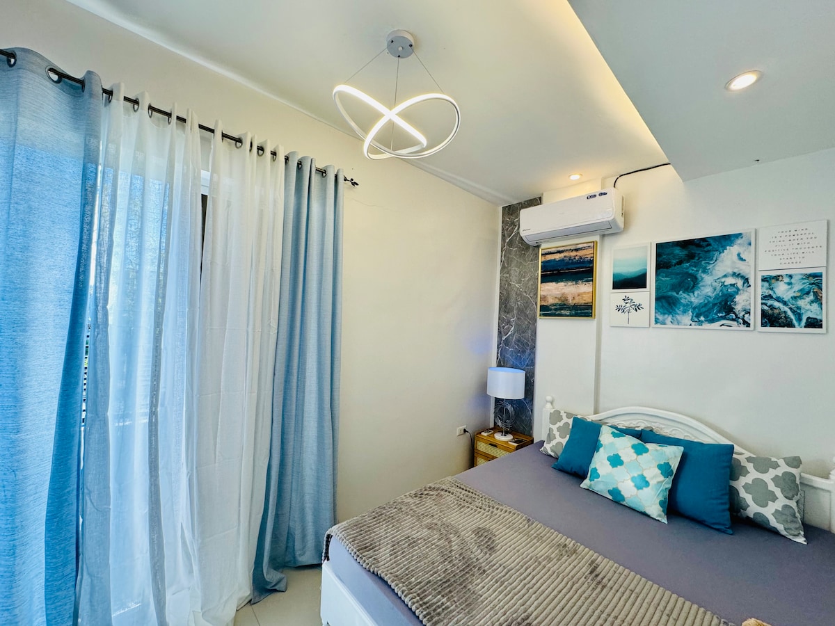 A haven for people who wants a staycation memorable with peaceful ambiance. It has a spacious and convertible bedroom with movable cabinet/division for a (two) 2 queen size bed. A Fully functional kitchen that is well lighted and ventilated where you can cook. With an 8cubic Fridge and a pantry cabinet for food: snacks, can goods, softdrinks available. • It's a fully airconditioned Haven with 2.5 HP Split type AC, plus 2 eletric fans for added air circulation • A clean bathroom with bidet etc