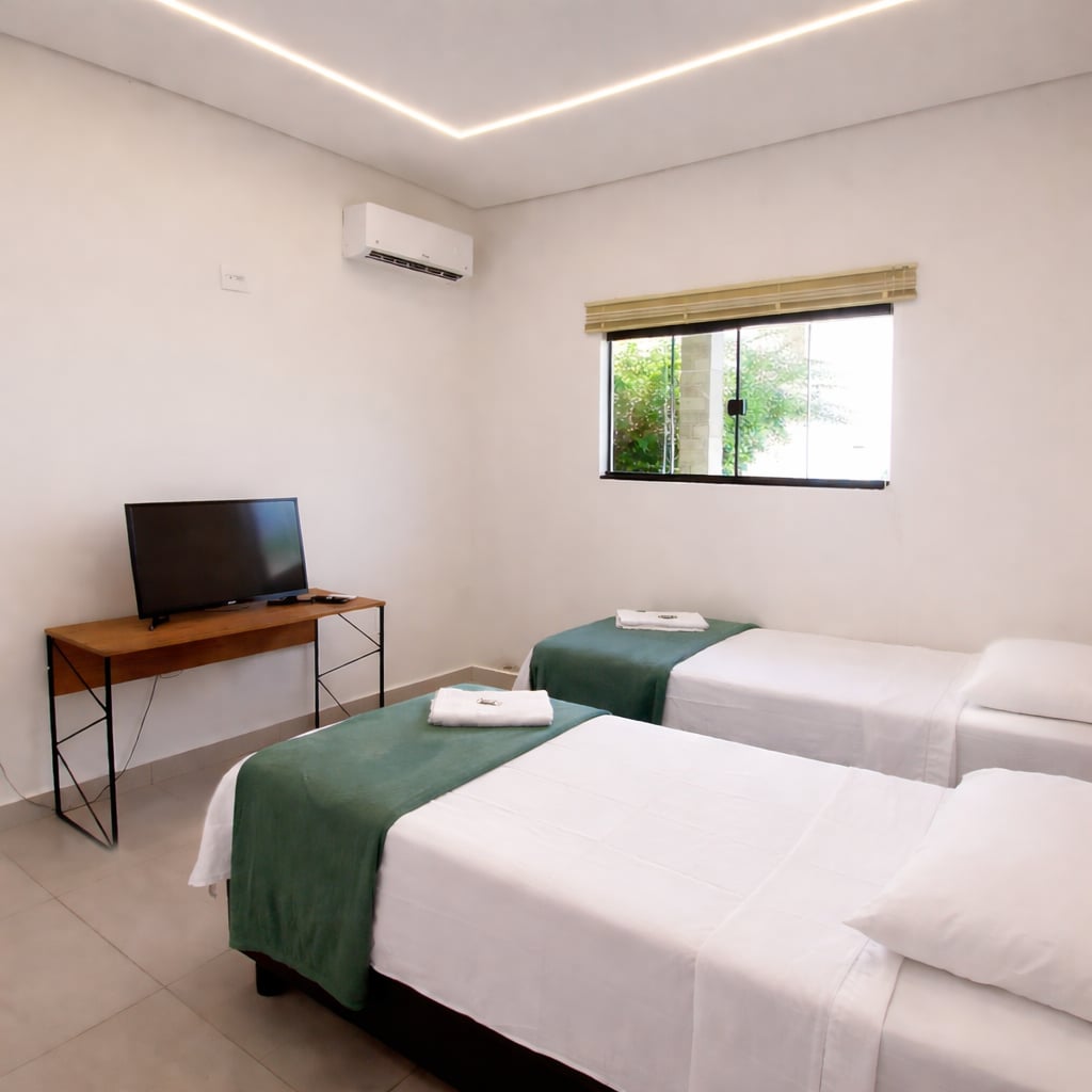 🏡 Situado em bairro nobre, acesso fácil aos principais pontos da cidade! 2 camas solteiro super confortáveis, suite com banheiro, ar-condicionado, Wi-Fi rápido, Smart TV e frigobar. Espaço recém reformado tudo novo! 🚗 Garagem exclusiva grátis! Entrada independente lateral: total privacidade e segurança. 🐾 Pet friendly (taxa extra). ⚠️ Acesso escada, balcão para refeições com itens básicos. Ambiente familiar muito acolhedor! 🛏️Venha se hospedar conosco e relaxar neste refúgio especial!