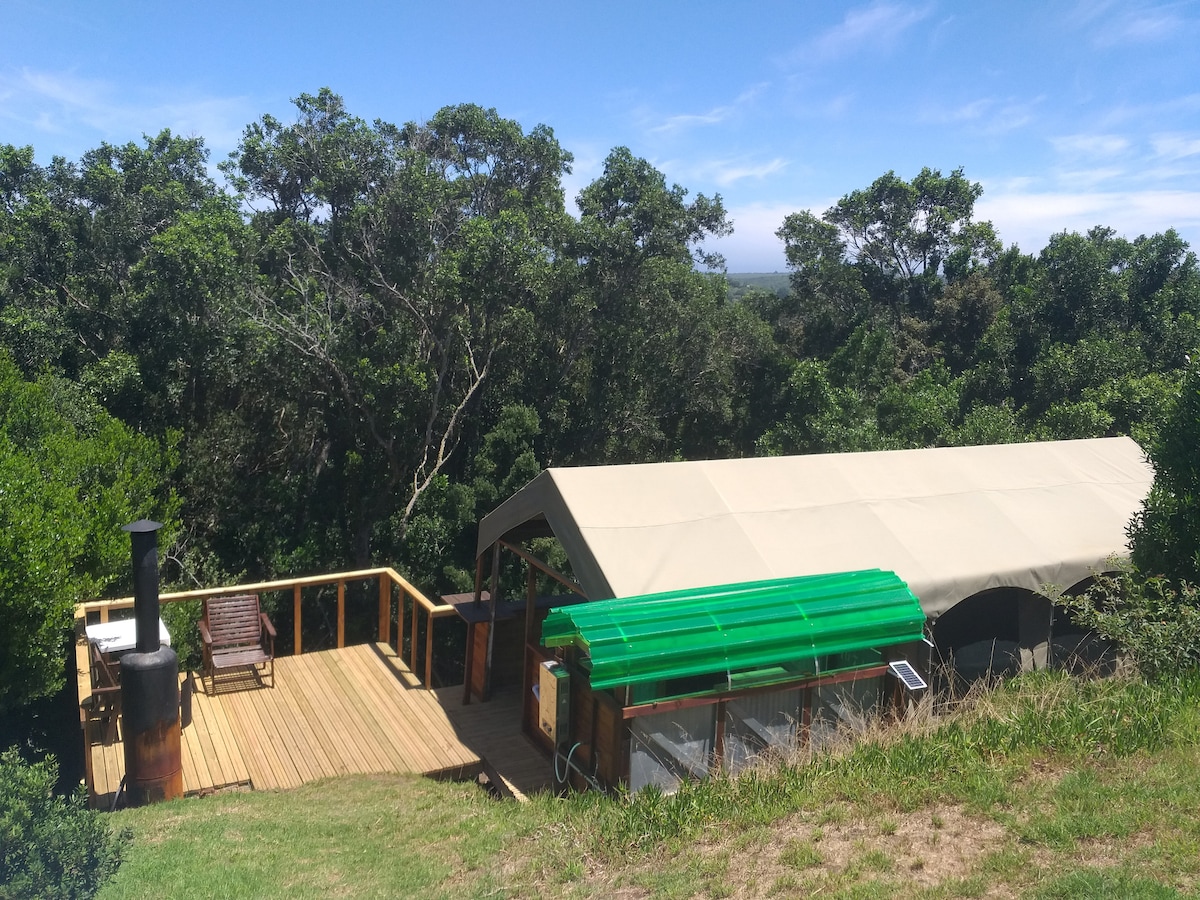 Vuelve a conectar con la naturaleza en esta escapada inolvidable. Grandes tiendas de campaña estilo safari situadas en una terraza elevada con vistas al bosque. La tienda tiene dos camas individuales, sillas, puntos de alimentación y una terraza para que te relajes. Tienes acceso a 3 opciones de baños, algunos con duchas al aire libre y otra con una bañera con vistas al bosque. Utiliza nuestra cocina comunitaria limpia y bien equipada, así como las zonas de braai, un bar, una piscina profunda/bañera de hidromasaje, además de algunos hermosos paseos por los bosques y ríos.