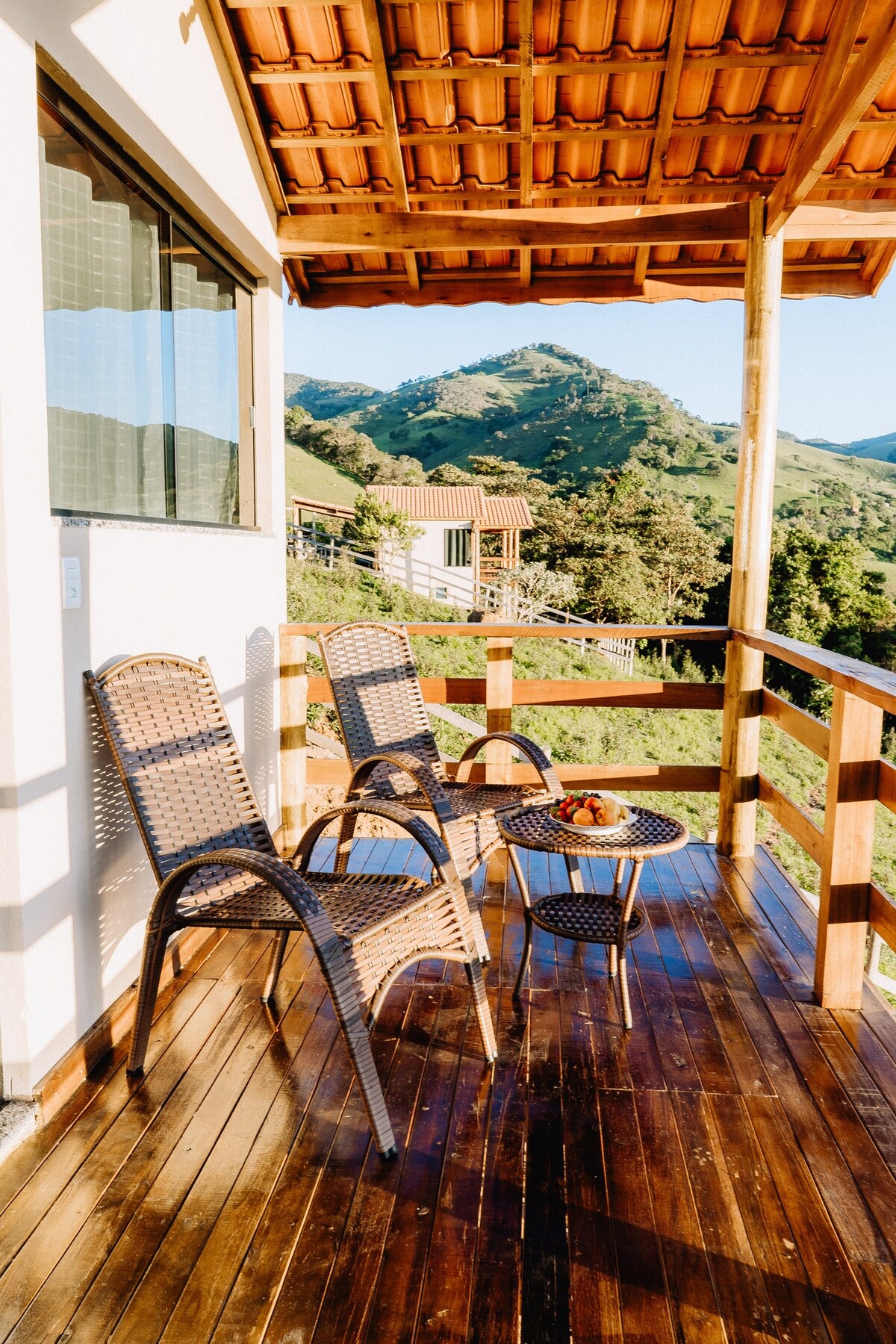 Mi espacio es un chalet muy nuevo y acogedor, con cocina equipada, baño y balcón en la primera planta, y en la segunda planta hay un dormitorio con una cama doble y una cama individual y una terraza con unas vistas increíbles... Estamos a 36 km de la ciudad de Itamonte. Ven a descansar y relajarte en medio de la naturaleza y las montañas de Mantiqueira. Y estamos a 17 km del parque nacional de Itatiaia, en lo alto de Agulhas Negras. Y cerca de varias hermosas cascadas del río Aiuruoca.
