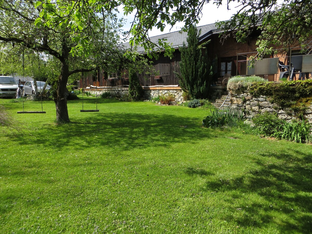 Casa de montaña renovada con todas las comodidades necesarias incluyendo sábanas y toallas para familias y curistas . Orientada al sur, por lo que es muy luminoso, encontrará todas las instalaciones necesarias para pasar una excelente estancia. 2 dormitorios con cama doble y cada uno su baño + un espacio privado con cama doble en el ático de la casa, así como una gran cabaña para los pequeños. La casa tiene un jardín soleado, así como una terraza y un garaje