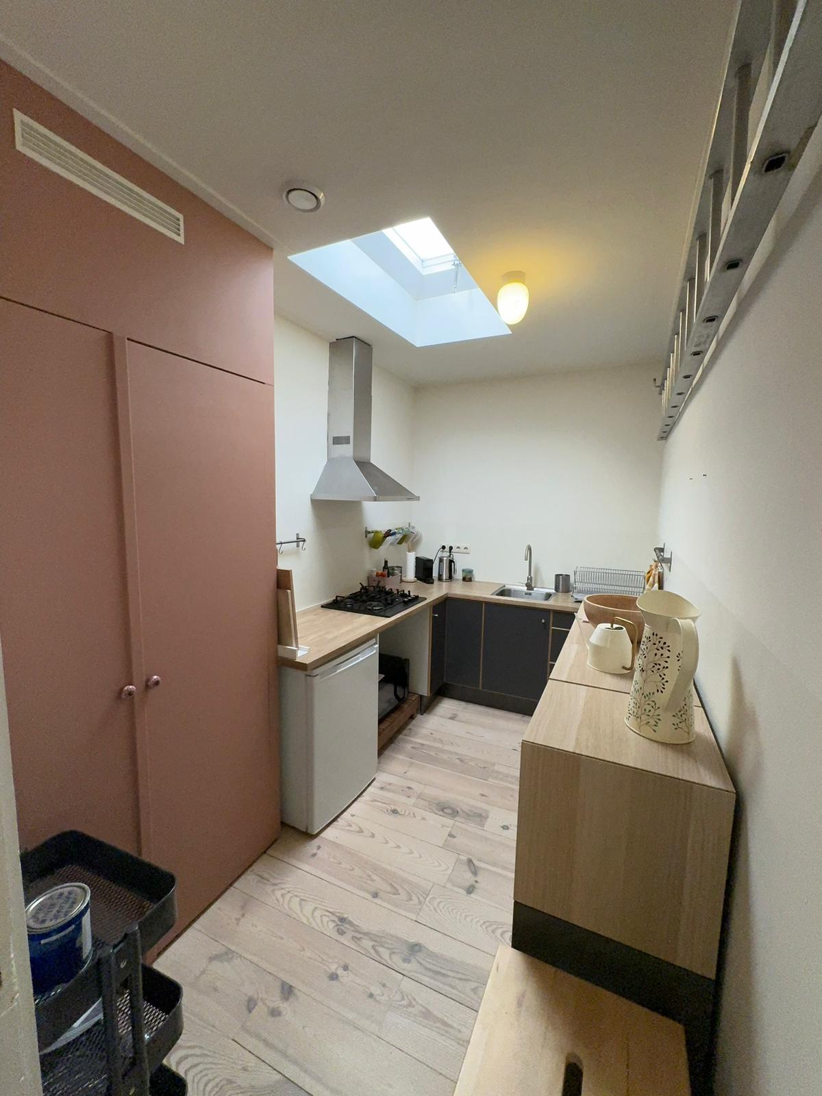 Este apartamento totalmente amueblado, en el segundo piso, se encuentra en un barrio acogedor junto al Noorderplantoen de Groningen, una zona verde deseable caracterizada por la arquitectura de principios del siglo XX y los caminos de ladrillo. Tienes toda la planta para ti, esto incluye una sala de estar, un dormitorio con cama tamaño queen, baño y cocina.