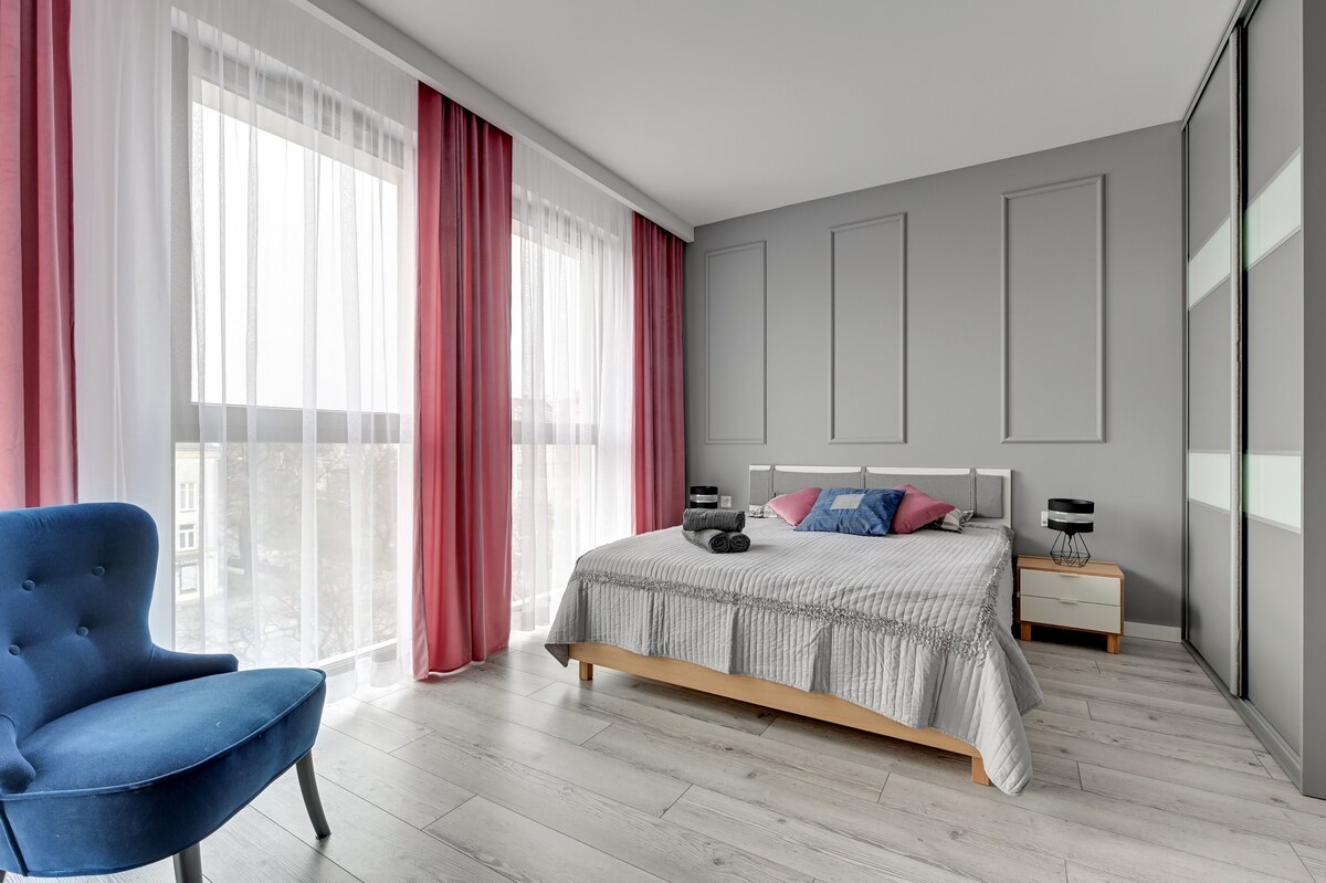 Un apartamento moderno y de alto nivel, perfecto para parejas (hasta 2 personas). Cerca del centro, con muy buenas conexiones de transporte: hay paradas de autobús y tranvía en las inmediaciones. El apartamento está ubicado en un edificio de la década de 1970, ubicado en una tranquila zona residencial, a unos 1,5 km a pie del casco antiguo. Las instalaciones se encuentran en el segundo piso de un edificio equipado con ascensor. Hay mucho estacionamiento gratuito disponible en el área.