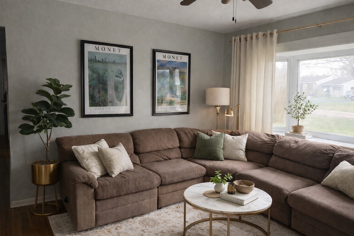 Granja 🌳 histórica de 1830 en 4 acres aislados 🛏 4 dormitorios • 5 camas • 2 baños • Capacidad para 9 personas ✨ Renovado con encanto vintage y comodidad moderna Baño 🛁 principal con bañera de hidromasaje y tragaluz Cocina 🍳 totalmente equipada • Comedor para grupos Patio 🔥 exterior • Parrilla de gas • Fogata 📍 A solo 5 minutos en coche del famoso templo de Kirtland Estanque 🌊 privado con vistas a la naturaleza 🚗 Mucho aparcamiento en la entrada para todos tus vehículos Relájate en Willow Woods Retreat, una granja de ensueño perfecta para familias y amigos.