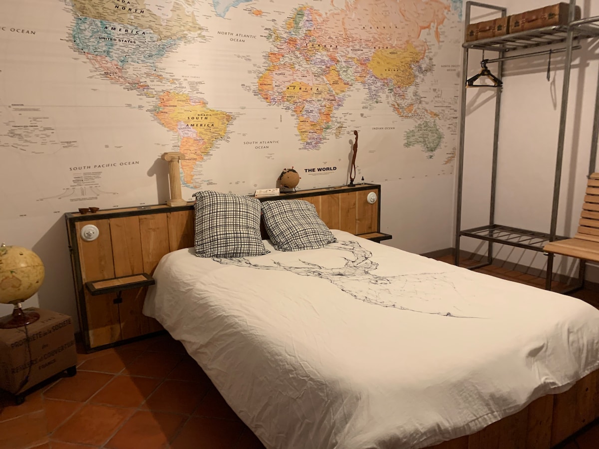 La HABITACIÓN (sin cocina) es totalmente autónoma, inodoro y baño privados, acceso a través de una entrada reservada para el alojamiento. Se encuentra en una parte de nuestra casa y tiene capacidad para 2 personas (hasta 3 si es necesario, suplemento de 10€/noche). En caso de que sea necesaria la segunda cama (sillón convertible en cama supletoria de 1 plaza), incluso para 2 viajeros, se le pedirán 10 € adicionales a su llegada. La habitación debe devolverse limpia (o paquete de limpieza 10€ )