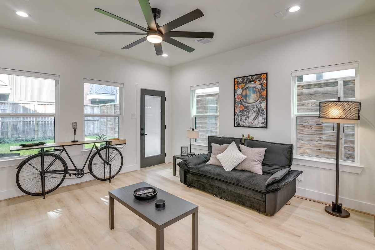 Perfecta para grupos o familias, esta moderna y elegante casa adosada tiene capacidad para 10 personas. Con 3 amplios dormitorios, 3,5 baños y 5 camas, ofrece mucho espacio para relajarse y descansar. La sala de estar de concepto abierto está elegantemente amueblada, creando un espacio acogedor para que todos se reúnan. Situado a solo 5 minutos del centro de Houston, estarás a poca distancia a pie de los mejores restaurantes, bares y entretenimiento que la ciudad tiene para ofrecer.