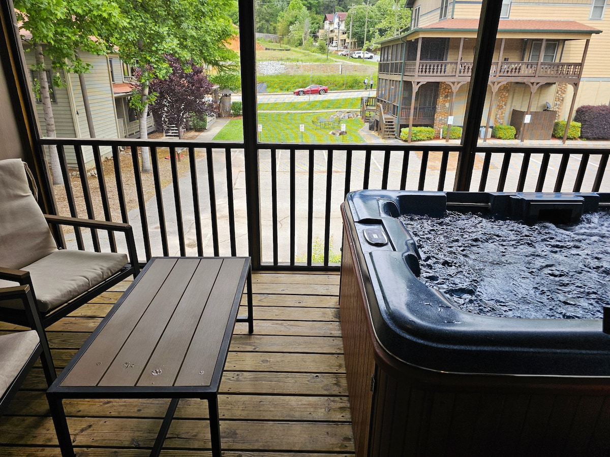 Lo suficientemente cerca como para ir andando a todas partes, pero lo suficientemente lejos como para retirarse del ajetreo y el bullicio de la ciudad durante las épocas de mayor actividad del año. A 7 minutos a pie del Centro de Bienvenida de Helen y del restaurante Spice 55. A 8 minutos a pie del sendero histórico Helen a Hardman Farm. A 9 minutos a pie del parque acuático y de tubing en el río. A 12 minutos a pie del minigolf alpino. (0,7 millas cuesta arriba, iría en coche) hasta Valhalla Sky Bar y Restaurante. ¡Ideal para una ocasión especial! ¿Olvidaste algo? Dollar General está a 10 minutos a pie (0,5 millas)