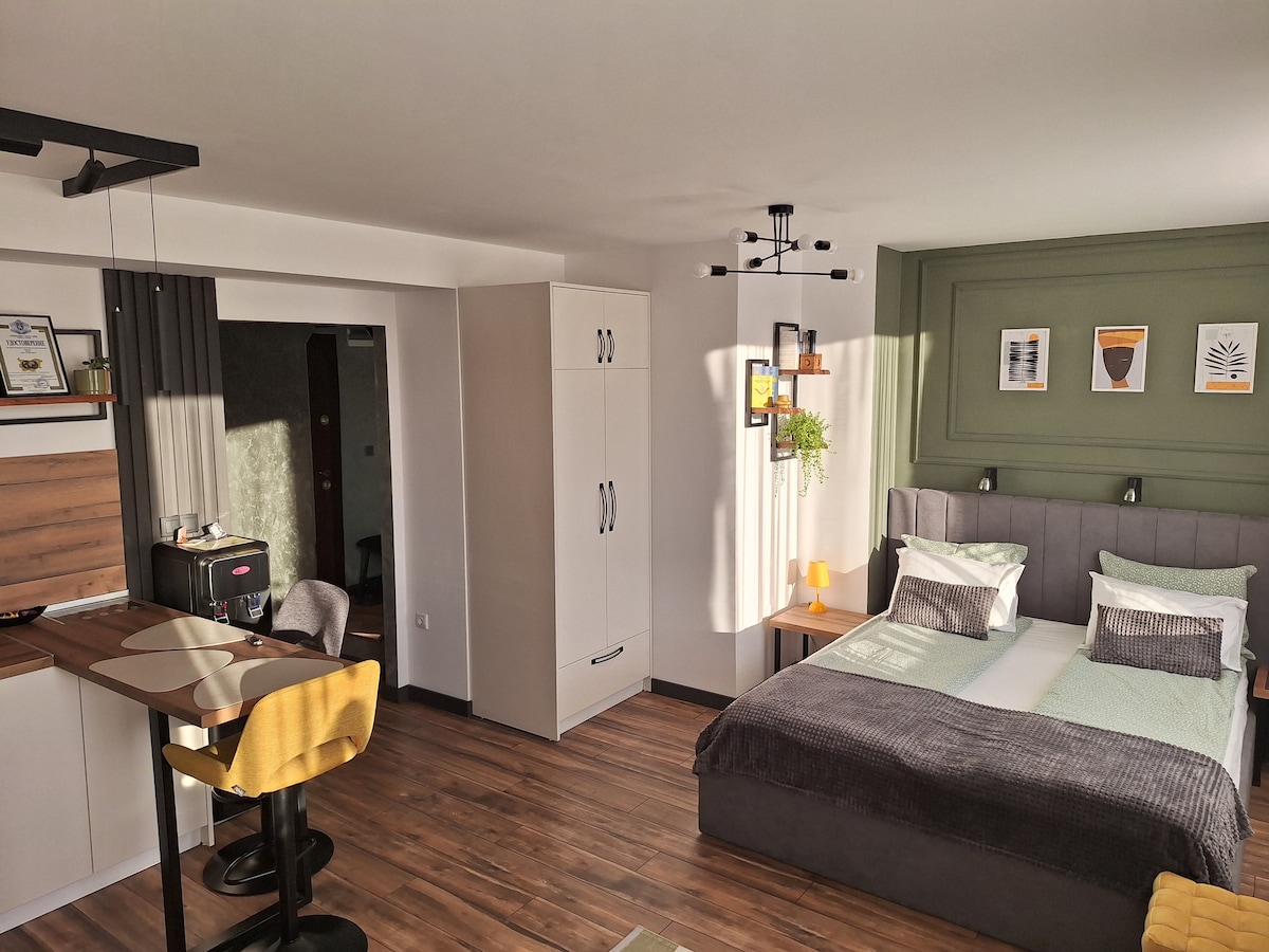 ¡Bienvenido a tu escapada perfecta a Veliko Tarnovo! Este es un loft de estilo boutique de diseño completamente nuevo que se encuentra en el corazón del casco antiguo, justo enfrente de Samovodska Charshia y a pocos pasos de la fortaleza de Tsarevets, museos y restaurantes. De reciente construcción, combina encanto, comodidad y creatividad, ofreciendo una estancia única. Disfruta de unas vistas impresionantes, detalles artísticos, rincones acogedores y un ambiente único e inspirador. Ideal para parejas, creativos y soñadores que buscan una estancia única.
