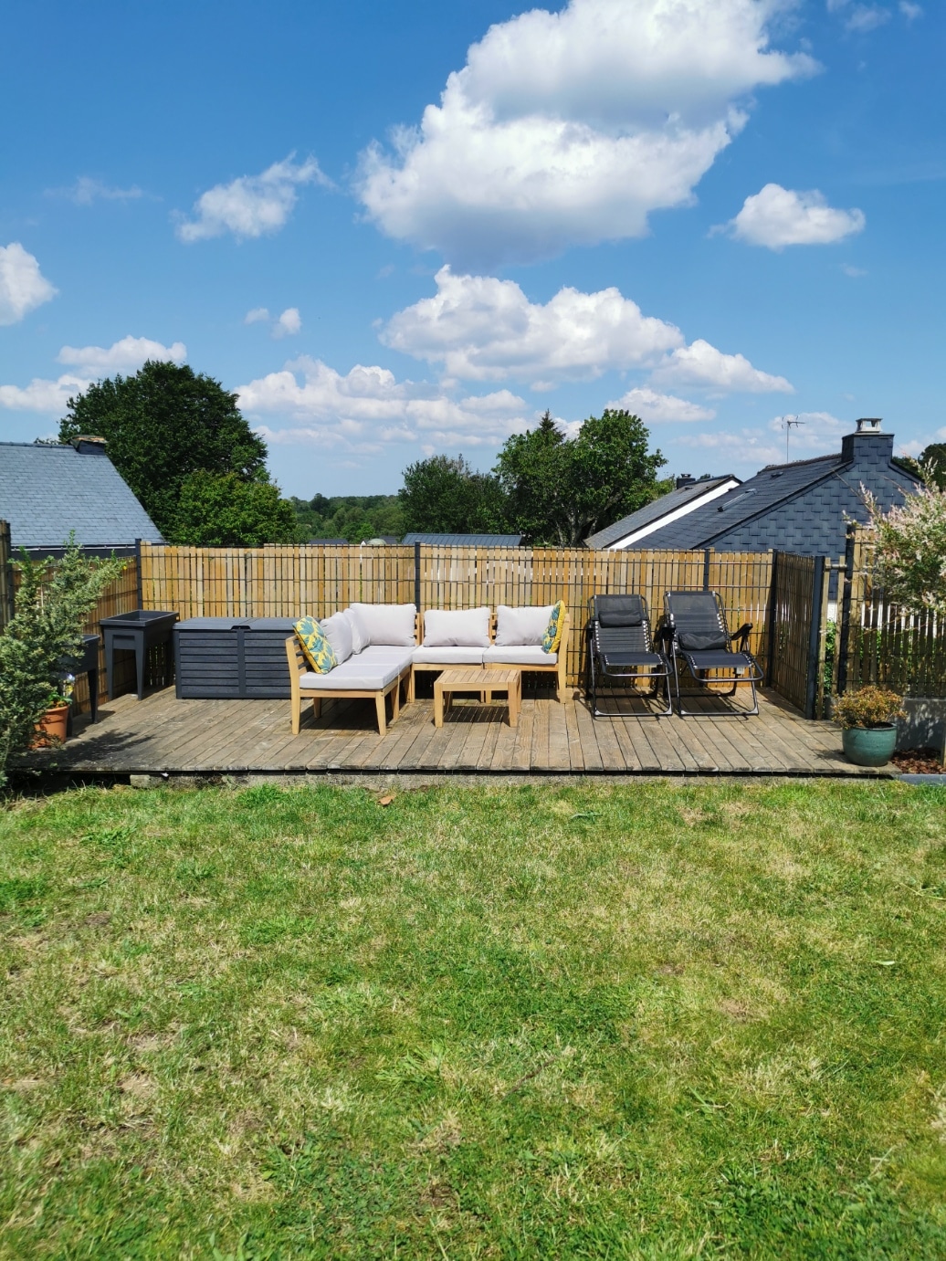 Una pequeña casa de madera con su jardín tranquilo, en el corazón de una granja de hortalizas orgánicas, Con una ubicación ideal para practicar senderismo, admirar los caminos hundidos, los bosques, los bonitos prados y los arroyos o simplemente relajarse. Es una invitación a la desconexión y al regreso a la naturaleza. Desde la terraza orientada al sur con barbacoa, mesa de comedor, muebles de jardín… podrá observar la colina, el bosque frente a usted y dejar que el canto de los pájaros le meza.