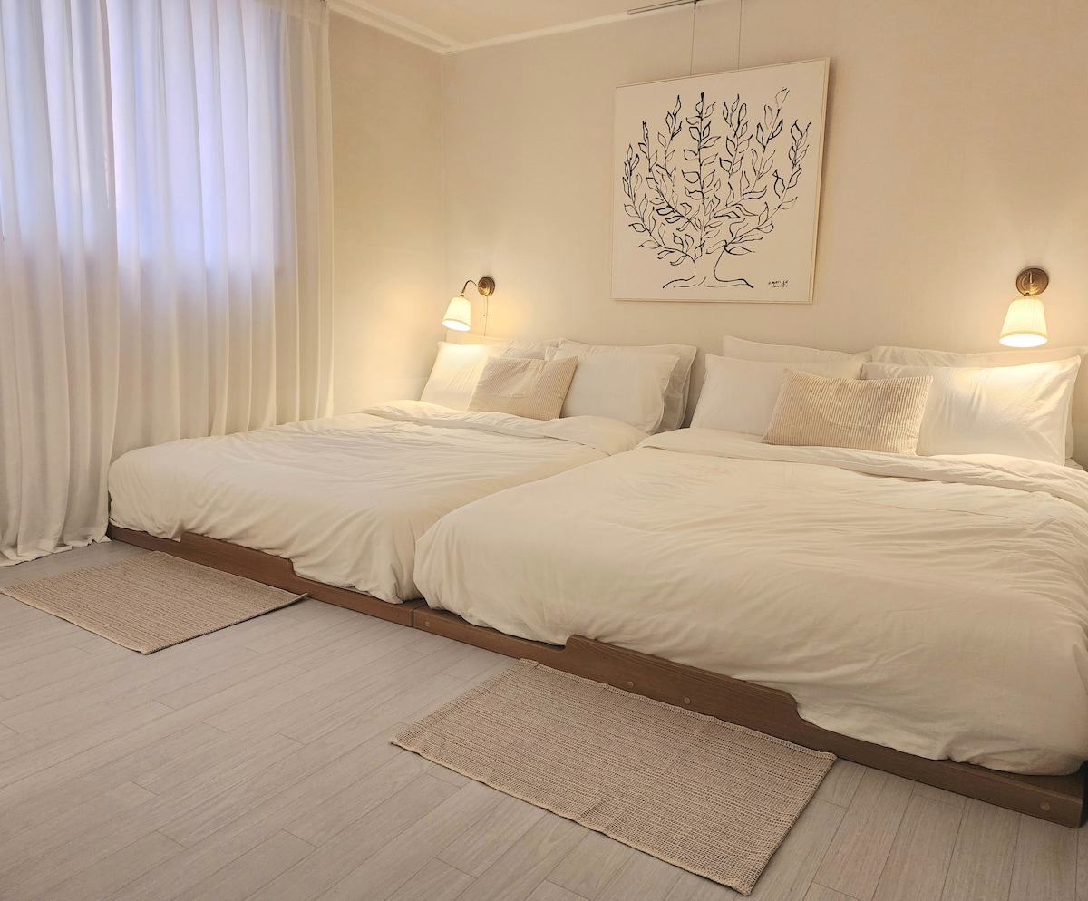 Welcome to your spacious home away from home in Seoul! This 3-bedroom, 2-bathroom home welcomes families, groups, and business travelers, with fresh bedding and clean bathrooms prepared for each guest. 🚏>7 to 10min. Walk to Airport Shuttle stop (Metro Line 2 Sindaebang St.) 🚇>Direct access to Metro Line 2 (Myeongdong, Hongdae, Gangnam) 🏡>Perfect for families & group ✨>Quiet local neighborhood 🛋️>WiFi, washer, heating/AC in every room included 🧺>Fresh linens, managed with care by our family
