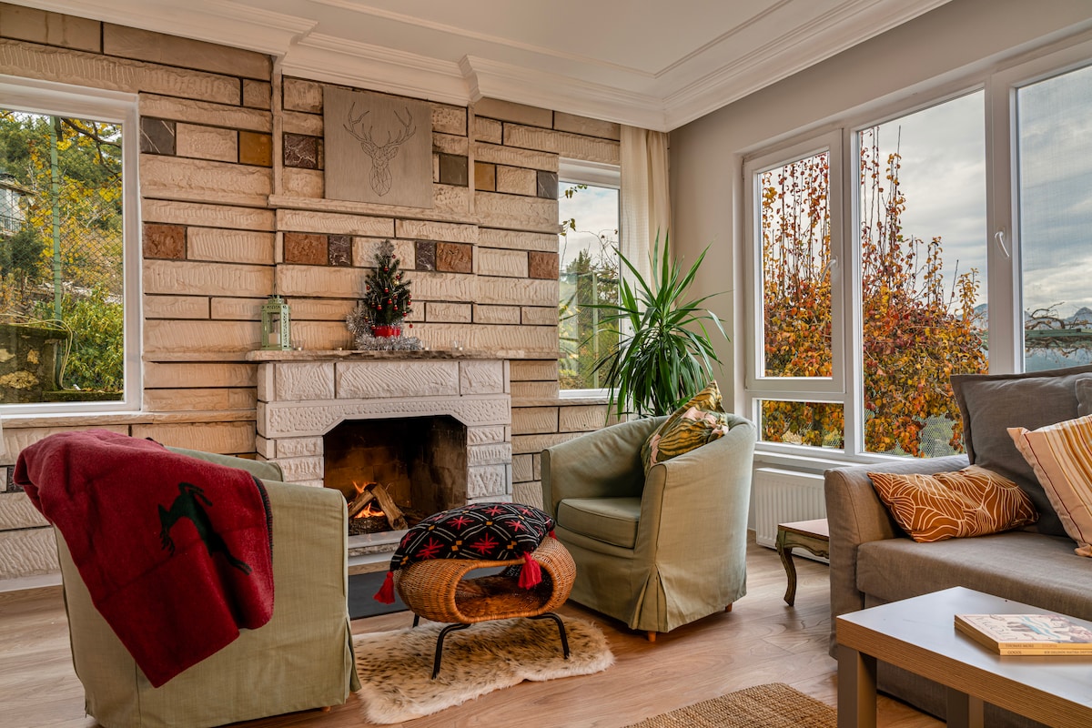 Mínimo 2 noches. En el corazón de la naturaleza, el auténtico chalet con chimenea en Saklıkent combina la calidez de la madera y la piedra con el confort moderno. Caminar, esquiar y respirar aire fresco de montaña durante el día; charlar junto a la chimenea por las noches, rejuvenecer en la sauna. Un refugio ideal tanto para escapadas románticas como para fines de semana tranquilos con una cocina bien equipada, camas cómodas, patio y wifi. Quédate a solas con las estrellas mientras disfrutas de tu café en la terraza con vistas a la nieve; experimenta el silencio, la naturaleza y la comodidad juntos. Te está esperando