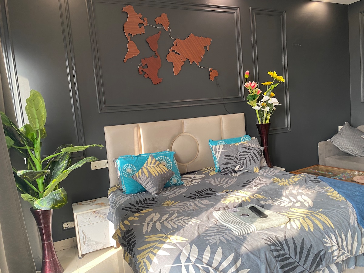 Bienvenido a Project Artisan's Retreat, un apartamento estudio cuidadosamente diseñado y elegante ubicado en lo alto del bullicioso zumbido de Noida, encaramado en lo alto de un bullicioso centro comercial. Tanto si viajas solo, como si eres un profesional que trabaja, un nómada digital o una pareja que busca una escapada acogedora, esta experiencia urbana elevada ofrece el equilibrio perfecto entre creatividad, comodidad y conveniencia. Project Artisan Retreat ofrece más que una estancia: es una experiencia. Desde vistas al atardecer hasta paseos a medianoche.