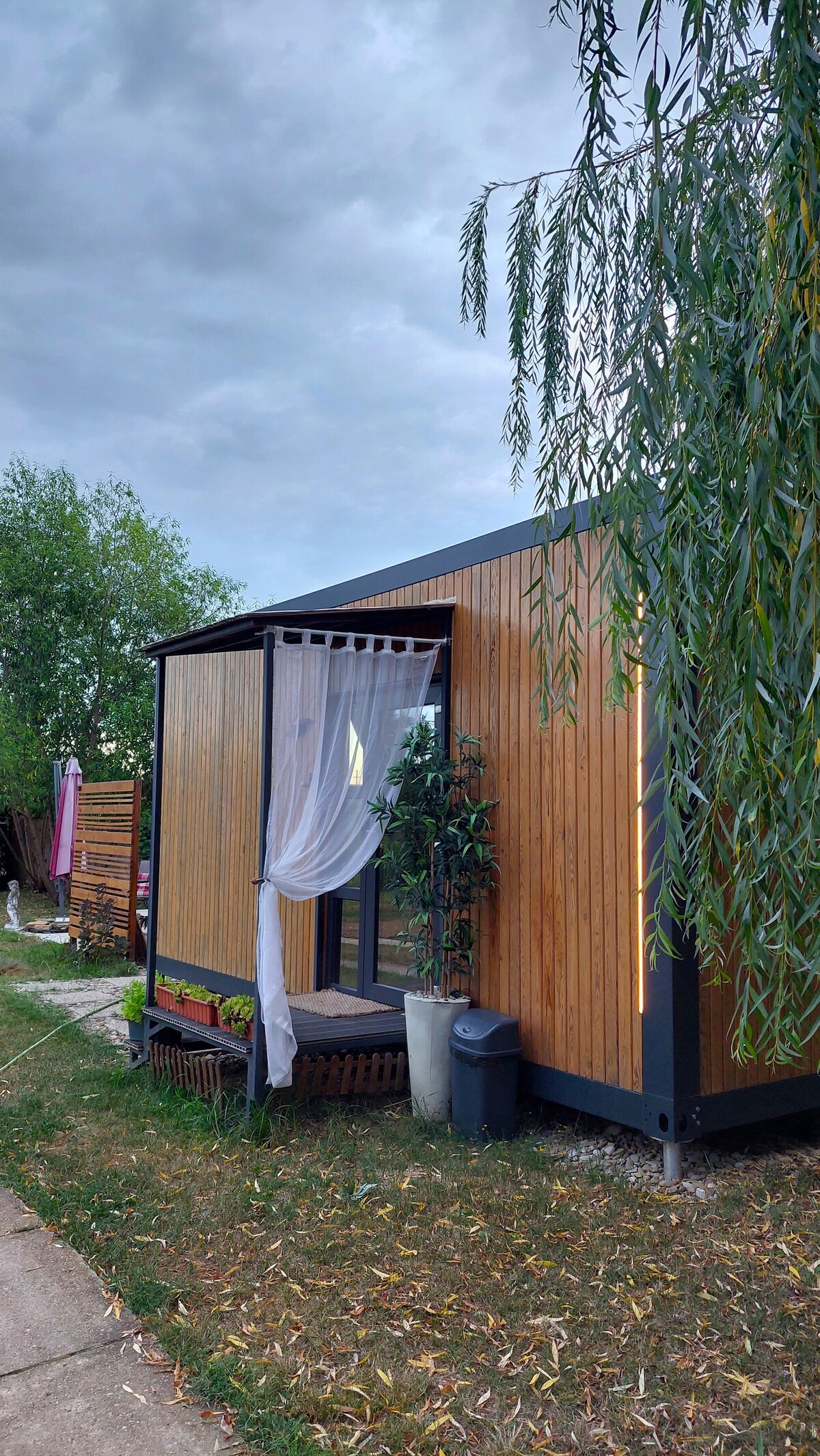 La casa en el jardín está construida por nosotros personalmente, para que la usen. Se compone de un dormitorio con un área de bar/oficina y un baño. También contamos con una bañera tradicional con estufa y agua salada preparada por el balaceala disponible entre septiembre y mayo con 24 horas de anticipación y por una tarifa de 150 toneladas. La casa está aislada de la casa grande, tiene privacidad y su propia zona de relajación al aire libre cuando el clima lo permite. ¡Es la ubicación ideal para pasar la noche después de un evento en el área!