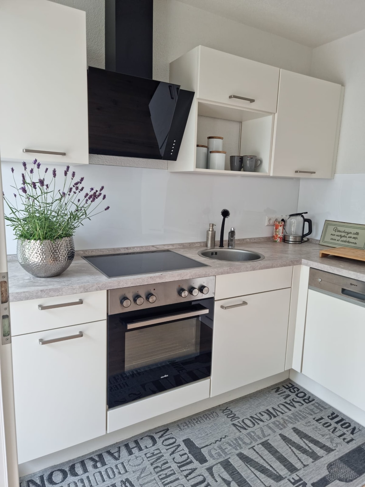 El apartamento está situado en una zona residencial tranquila y es completamente nuevo. Hay suficientes plazas de aparcamiento justo delante de la casa. La ducha es accesible y la entrada se puede hacer sin barreras sin ningún problema. El apartamento está en la planta baja. Las tiendas están a 7 minutos a pie, así como varios restaurantes y en verano también una heladería.