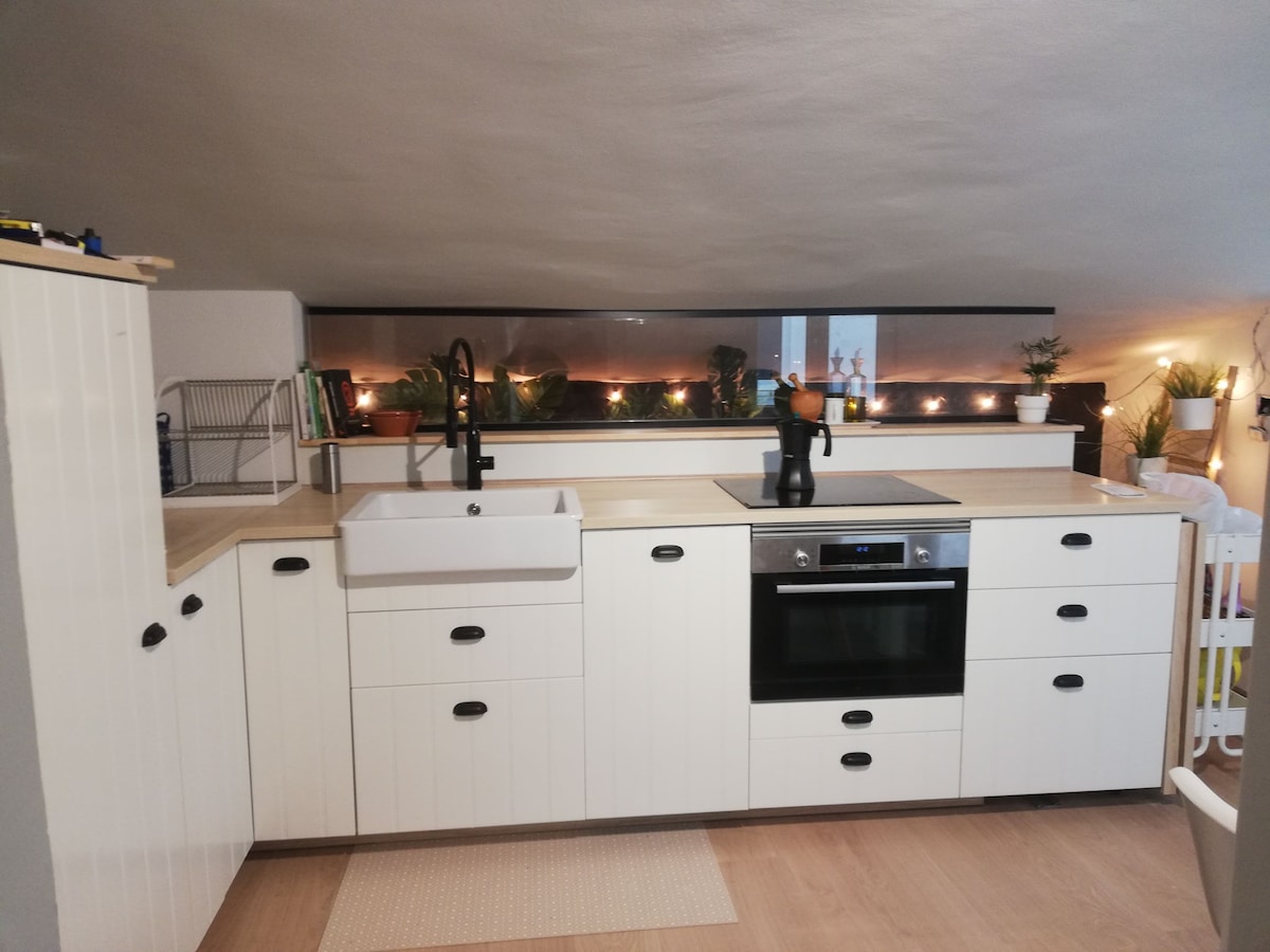 Disfruta de este alojamiento completamente reformado, es un apartamento bajo cubierta de 45m2 distribuidos en dos únicas estancias. Buena luz natural, y una cálida luz ambiental por la noche. Está ubicado en el centro histórico de la población, la cual tiene acceso directo a la autopista que te facilita la visita a cualquier zona del entorno. A 13km de la playa más cercana, y rodeado de monte y naturaleza. numero de registro ESFCTU00002001600019128400000000000000000000ESS031106