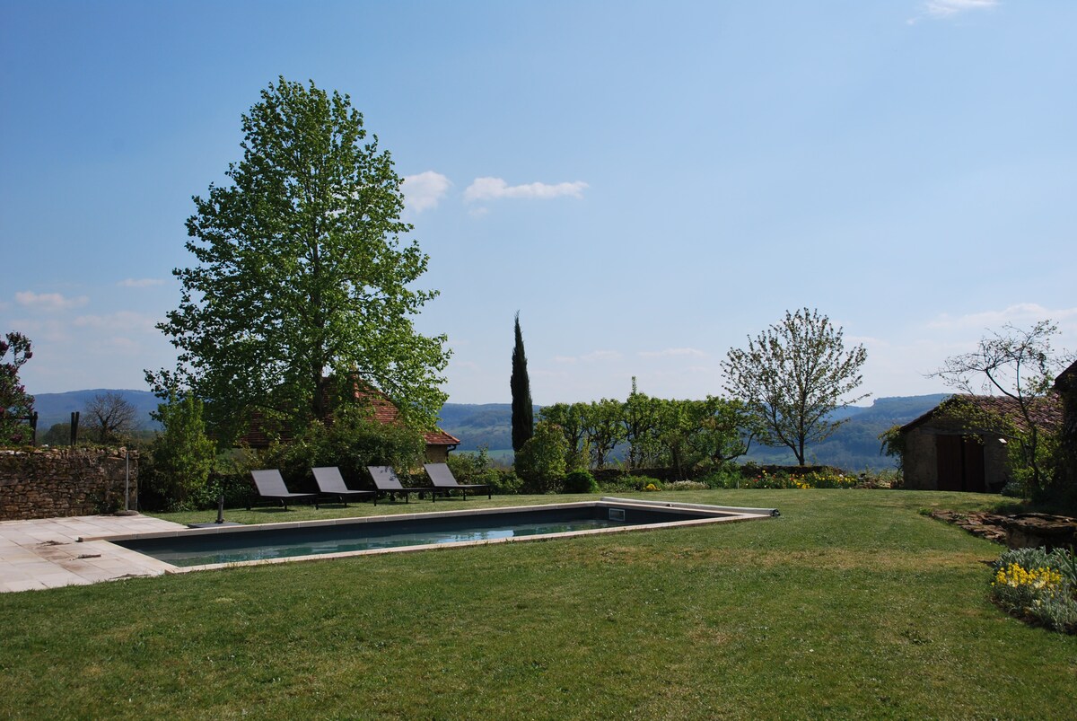 Perla rara al pie del castillo de Castelnau , bonita casa de piedra con piscina , con impresionantes vistas del valle , el pintoresco pueblo de Loubressac, el circo de Autoire . Punto de partida ideal para visitar Carennac , valle de la Dordoña, abismo de Padirac 13 km , Rocamadour 25 km , acceso directo a pie a las calles peatonales del castillo , a 2 km para nadar en la Dordoña , la magnífica plaza pavimentada en la Bastida del siglo XIII de Bretenoux y su mercado el sábado por la mañana