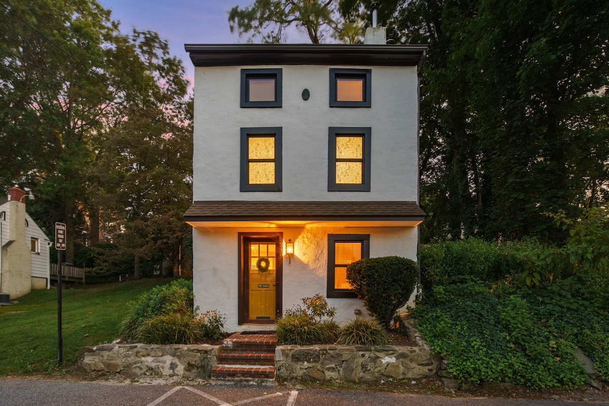 Bala Farm Cottage es una casa de piedra maravillosamente acogedora, ubicada a menos de 3 millas del centro de West Chester, en la cima de una colina en un barrio tranquilo. Tiene un encantador estudio en la planta baja con una ventana mirador que da a unos árboles majestuosos y un vestíbulo de entrada que termina con un bar con fregadero, equipado con una mininevera, hervidor de agua, cafetera y microondas. La escalera curva original conduce al dormitorio de arriba con cama tamaño queen y un espacioso baño. ¡Te encantará tu estancia en la casa de campo!