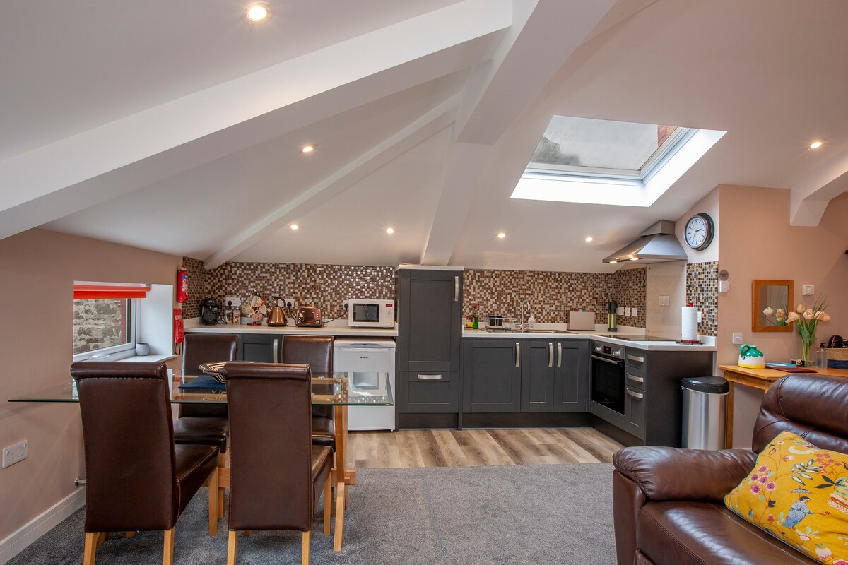 Unbeatable panoramic views of Oban Bay and Isle of Mull from this immaculately, renovated top-floor apartment overlooking the marina. Especially popular with visitors from the USA and overseas, this spacious penthouse (90m2) offers modern comforts from one of Oban's most iconic Victorian buildings - and former home of The Oban Times newspaper. Watch the ferries come and go in the morning with your breakfast - and later relax with a glass of wine observing spectacular sunsets over the islands.