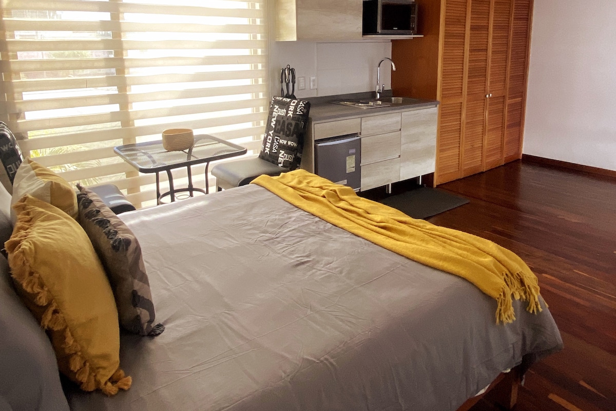 Renovamos este departamento y ya está listo para hospedarte! Hospédese en una de las áreas más populares de Guadalajara y disfruta de todas las comodidades, que incluyen una nueva cama tamaño queen, cocineta, e Internet 100mbps. Estamos en una calle tranquila a solo un par de cuadras de excelentes cafés, restaurantes, tiendas de conveniencia y un gimnasio de la vieja escuela con una piscina al aire libre (¡hacen pases de un día!). ¡Quédate aquí!