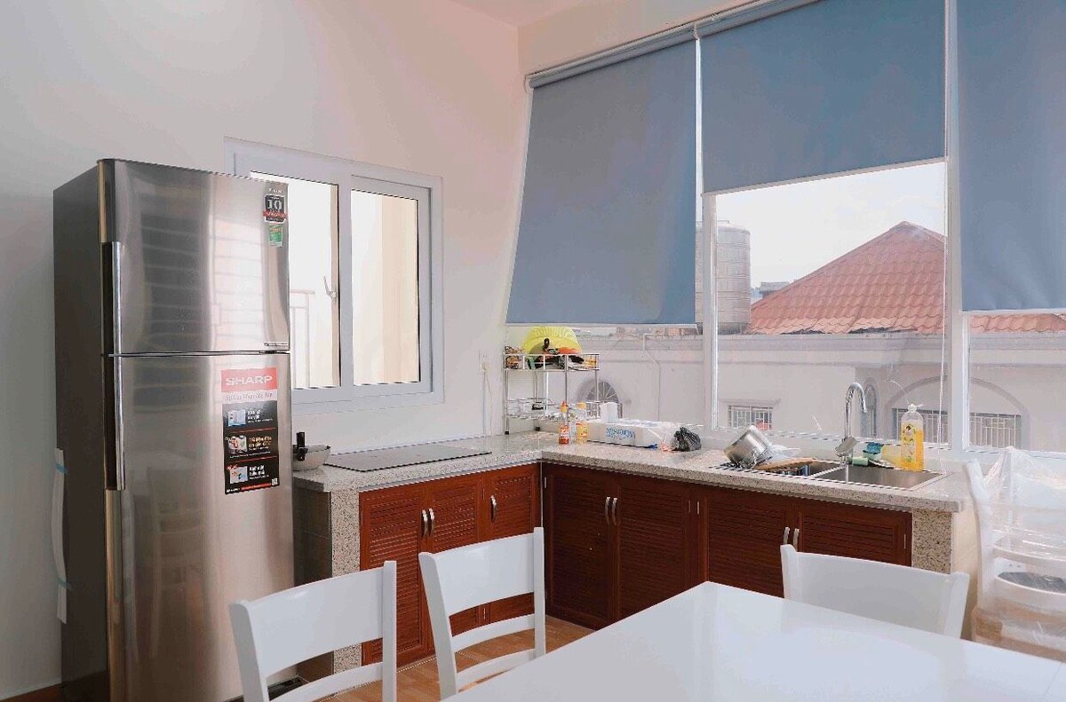Welcome to TheA Home. The apartment is on the 15th floor, with a cool balcony with airport view - Location: Only 5 minutes to the international airport, 15 minutes to the center - Near by: Local restaurants & a big park, Phuc Long Coffee, Wayne Coffee, Highland Coffee, ATM and convenience stores (7 Eleven, winmart,...) within 5' walking - Private apartment entrance, nice gym, infinity swimming pool, BBQ area - Shop Cleaning and laundry services in the building.