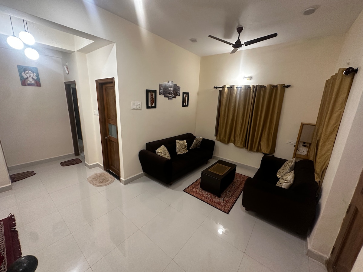 Welcome to Our Home! (Upgraded + photos updated) Step into luxury just a 2-min walk from the beach, offering breathtaking sea views. You can enjoy the calming sound of waves. Dine at shacks or renowned restaurants like Martin's Corner. Fully furnished rooms, well-equipped kitchen, and high-speed internet. Community swimming pool in a high-end gated community. Friendly caretaker is here to assist you