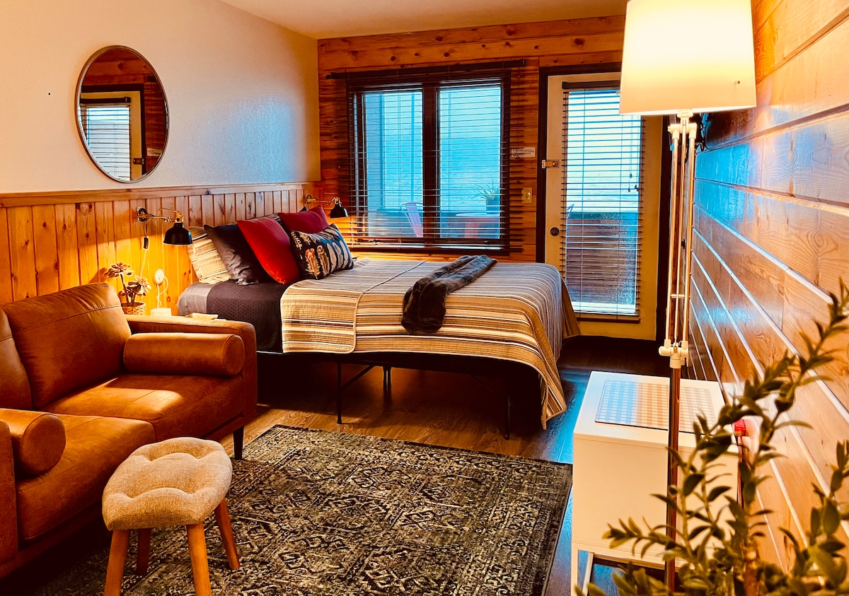 Relájate en una pintoresca y encantadora cabaña de estilo alpino de los años 60 escondida en una arboleda de álamos. Sumérgete en el paisaje del bosque perenne a través de las amplias ventanas soleadas dentro de nuestro acogedor espacio, que cuenta con una cocina de inspiración escandinava, estufa de leña y proyector de pantalla grande, disfrutando del mundo exterior en el interior. En el exterior, escucha los sonidos de nuestro arroyo mientras disfrutas de la chimenea, el jacuzzi o el patio con parrilla en medio de las Montañas Rocosas. Estamos a 20 minutos del lago Evergreen.