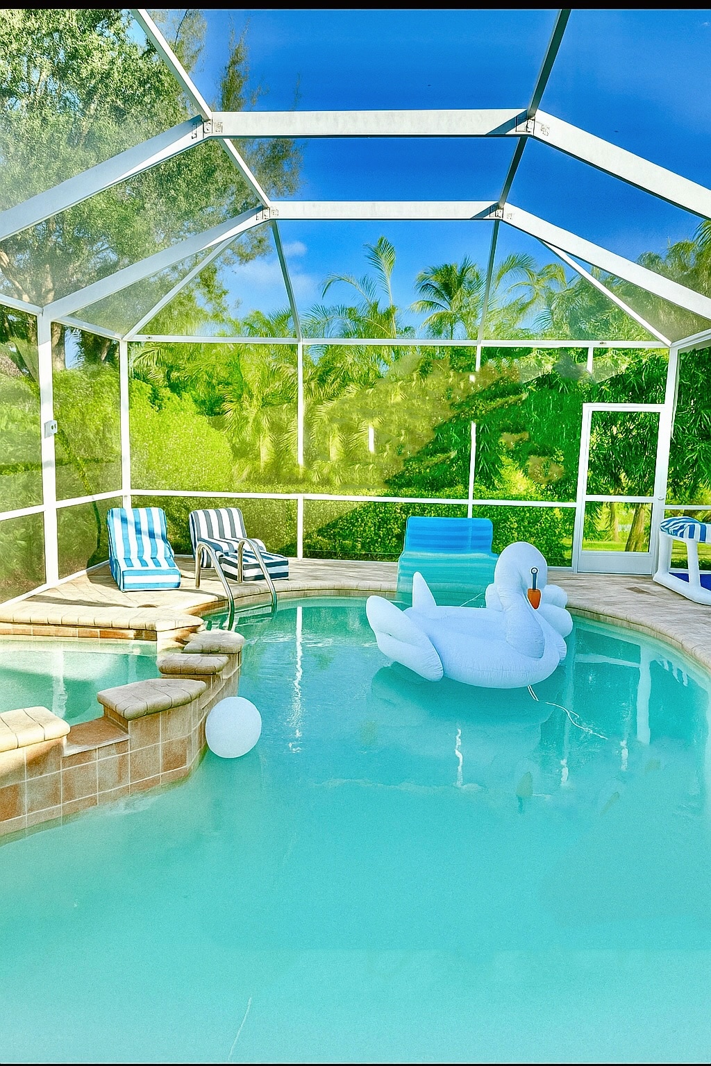 A pocos minutos de la playa, Flamingo Feliz es una alegre escapada de 3 dormitorios con una piscina completamente nueva, un acogedor salón tiki y extras para familias. Disfruta de televisores inteligentes en todas las habitaciones, una cocina totalmente equipada, equipo de playa, bicicletas y mucho espacio para relajarte. La piscina climatizada (calefacción disponible octubre-mayo) y las zonas de estar al aire libre hacen que sea perfecta para una escapada soleada a Florida. Ubicado cerca de los restaurantes de la Quinta Avenida, tiendas y las mejores playas de Naples, ¡todo lo que necesitas para unas vacaciones relajadas!