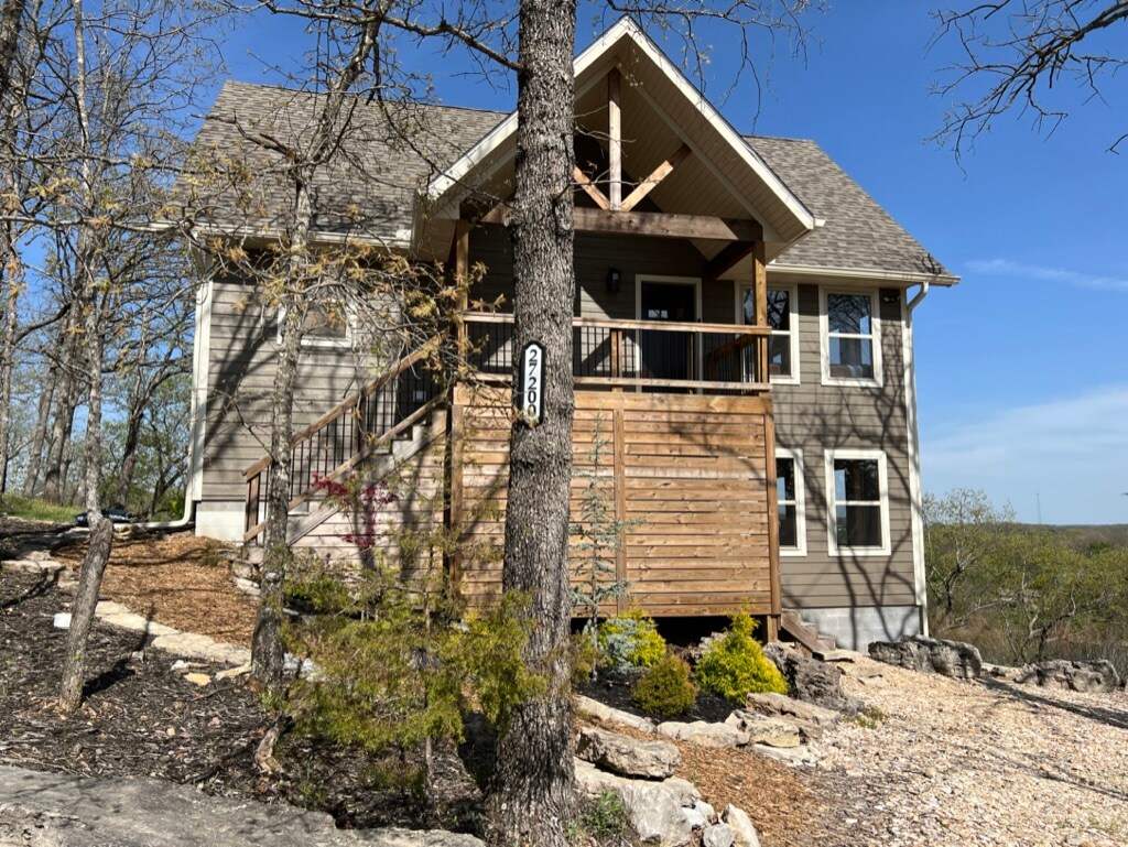 Due to Owner Change, please book any future stays - starting in August -at the following listing: airbnb.com/h/treehouse-with-lake-view-n Come to enjoy this Lake Cabin that has 3 bedrooms, 2 baths, 2 spacious living rooms with smart TVs in each & Dish service. Wood burning fireplace on the 1st floor, library & board games on the 2nd. Relax & enjoy a hot or cold beverage on a rooftop patio with the panoramic view of Table Rock Lake & a beauty of the Ozarks.