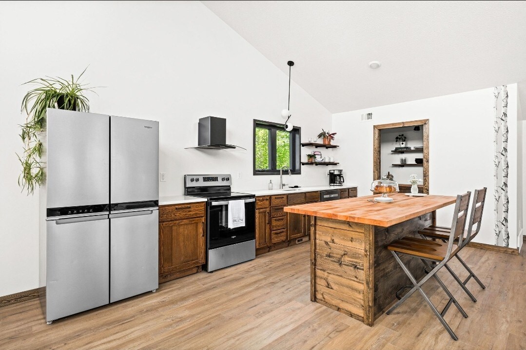 Escape to Woodland Retreat: contemporary charm meets modern comfort in this tranquil haven near Two Harbors, MN. Chic interiors, cozy bedrooms, and a custom kitchen offer the ideal getaway. Explore nearby trails and attractions, creating cherished memories amidst serene surroundings.