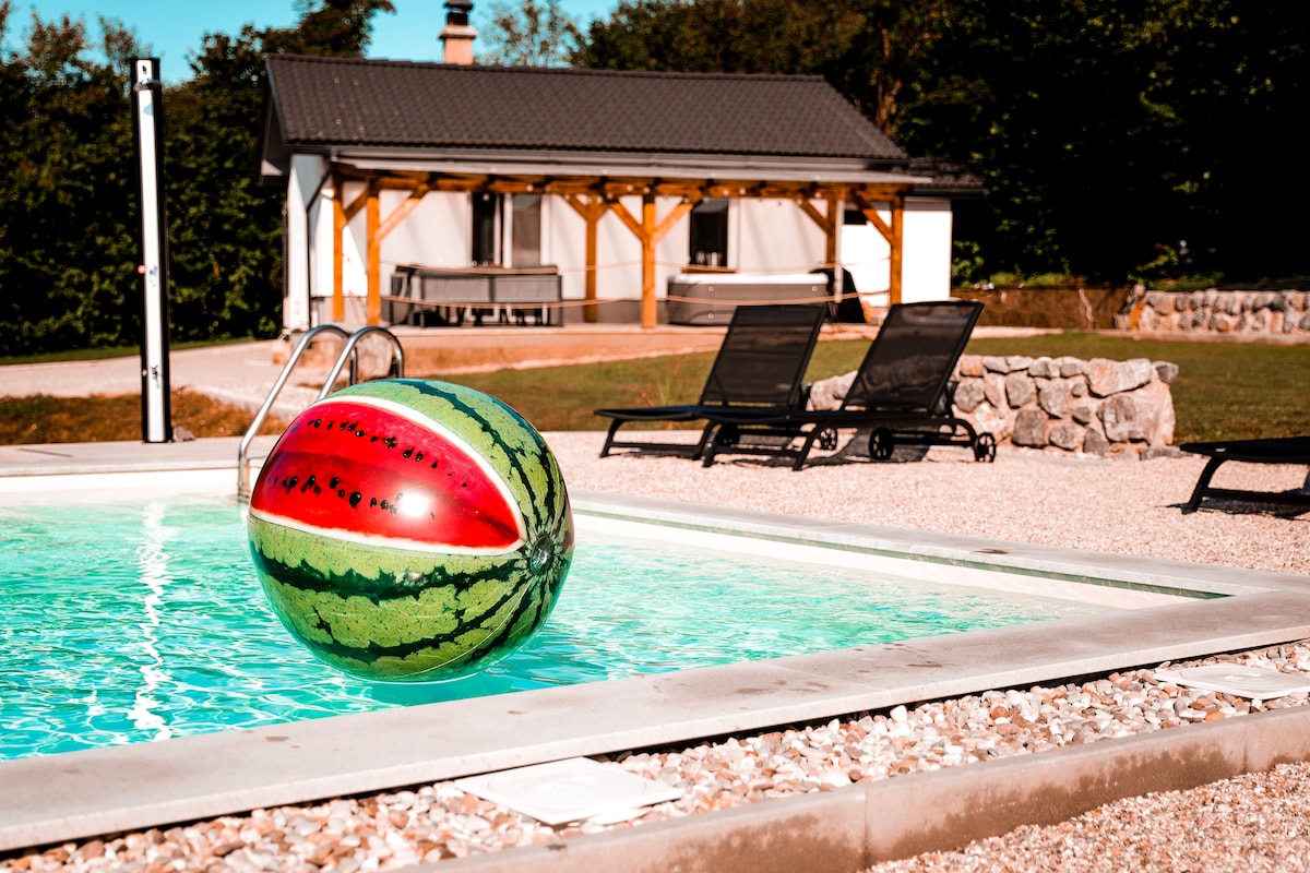 Relájate con toda la familia en este tranquilo refugio a los pies de Gorjanci Hills. El alojamiento proporciona la comodidad necesaria, la comodidad y un descanso de las preocupaciones diarias y las prisas. Ofrece hermosas vistas de Gorjanci, Pleterje Charterhouse, el valle de Šentjernej y colinas lejanas. El alojamiento está cerca de las principales atracciones turísticas: Pleterje Charterhouse, Otočec Castle, Otočec Adventure Park, Kostanjevica na Krki, etc. Cerca de los aeropuertos de Liubliana y Zagreb.