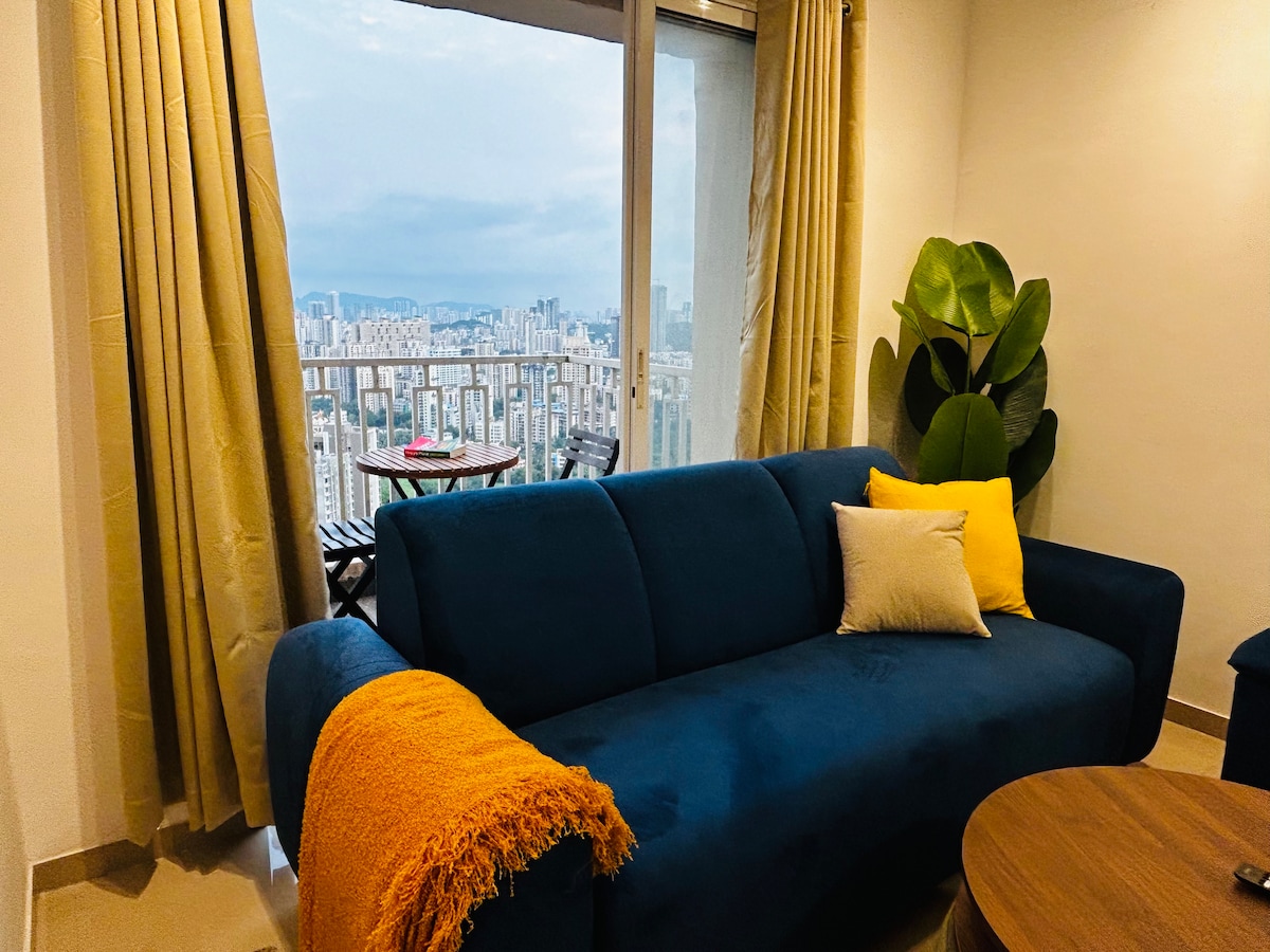 Un apartamento de 1 dormitorio situado en el centro de Goregaon West Mumbai con estación de metro justo en la puerta. Lugares cercanos incluyen NESCO Centre, Infinity Mall Inorbit Mall, Lokhandwala. A solo 10 km del aeropuerto internacional con excelente conectividad de este a oeste. Elegantemente diseñado con un ambiente agradable y equipado con todas las comodidades para una estancia larga y cómoda. Ideal para familias, empresas y estancias de trabajo. Una cocina totalmente equipada con servicio de limpieza opcional para comidas caseras y limpieza.