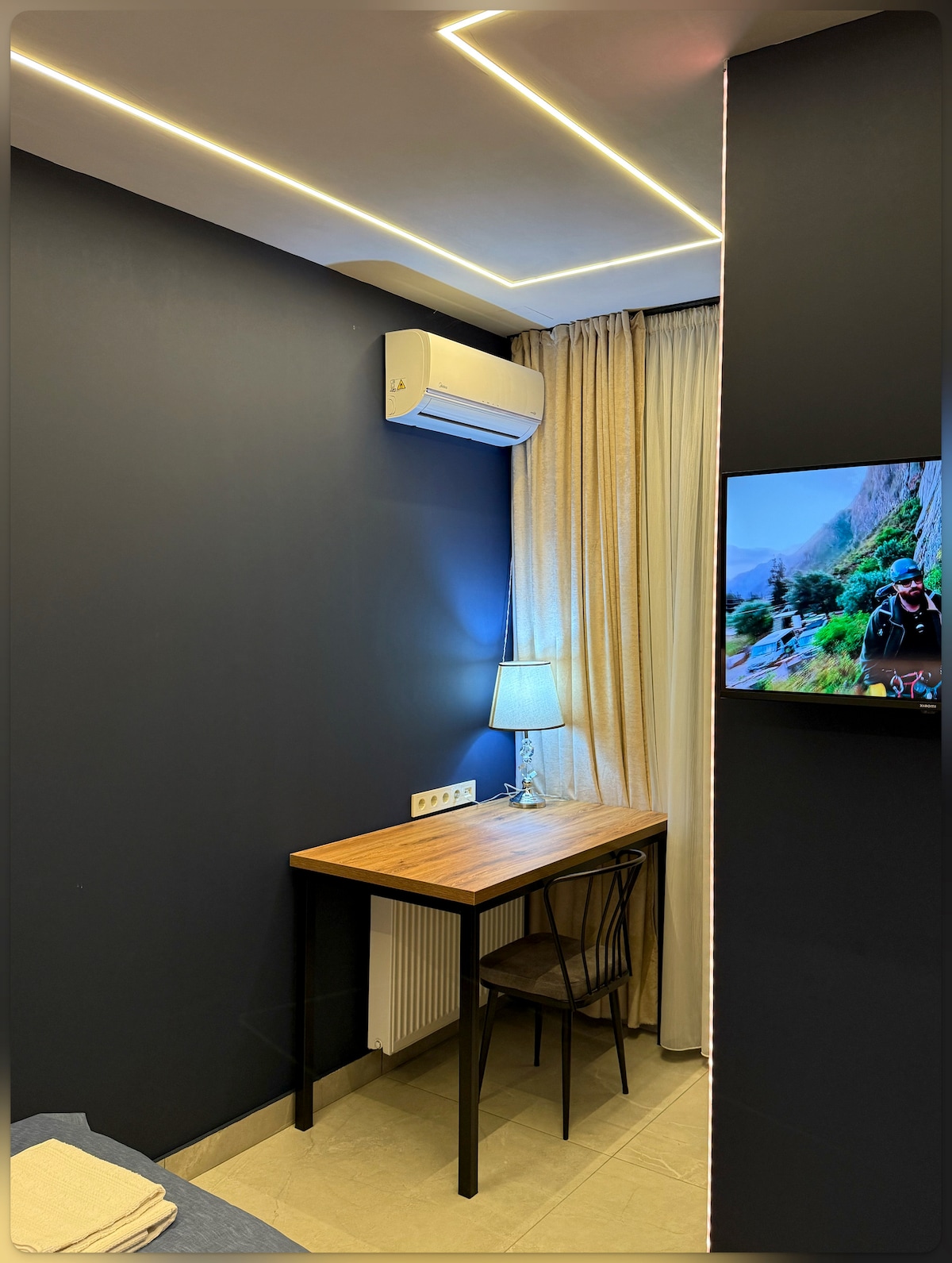 Dear friends, we are thrilled to present our stunning 48 sq.m one-bedroom apartment in Gori, Georgia - we have put heart and soul in designing it and making it a home away from home for our guests! The apartment is located in the very centre of Gori, on the 8th floor of a new, highly sought after Gori Palace development and has lovely city and hills views from its balcony!