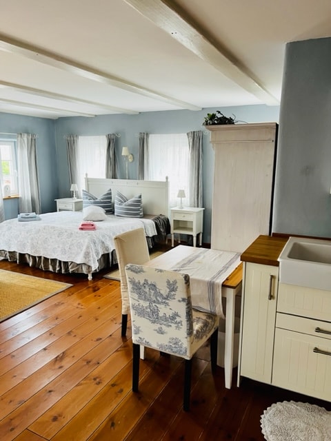 Alojamiento único con estilo histórico y moderno. Muebles antiguos combinados con baños y cocinas modernas. 6 áreas para dormir amuebladas de manera diferente y un gran espacio común y acogedor permiten la estancia de grupos grandes, así como reservaciones individuales. Jardín totalmente vallado de 1000 metros cuadrados con zona de barbacoa, parque infantil, casa del árbol, caja de arena y varias zonas de estar que te invitan a quedarte. Estacionamiento directamente en la casa. Sauna y conservatorio para relajarte.